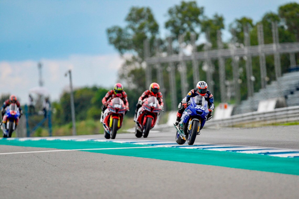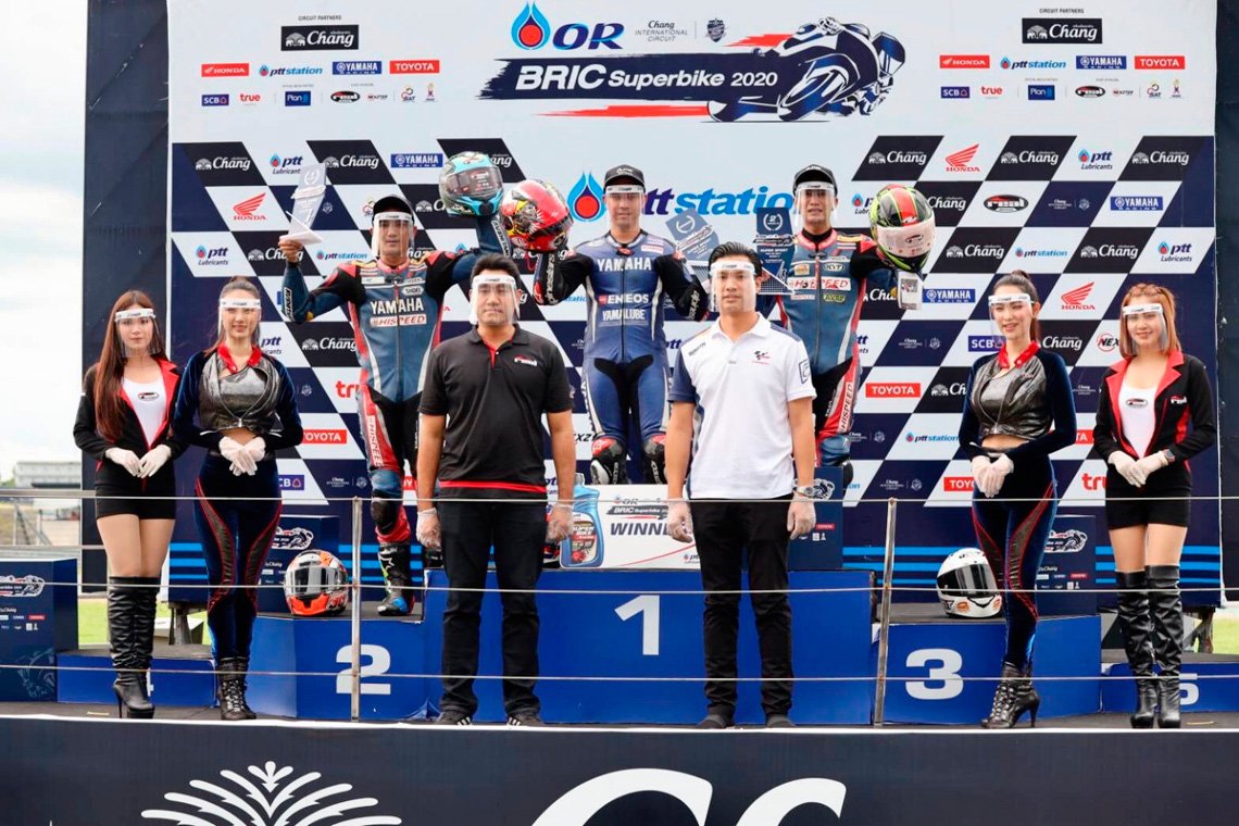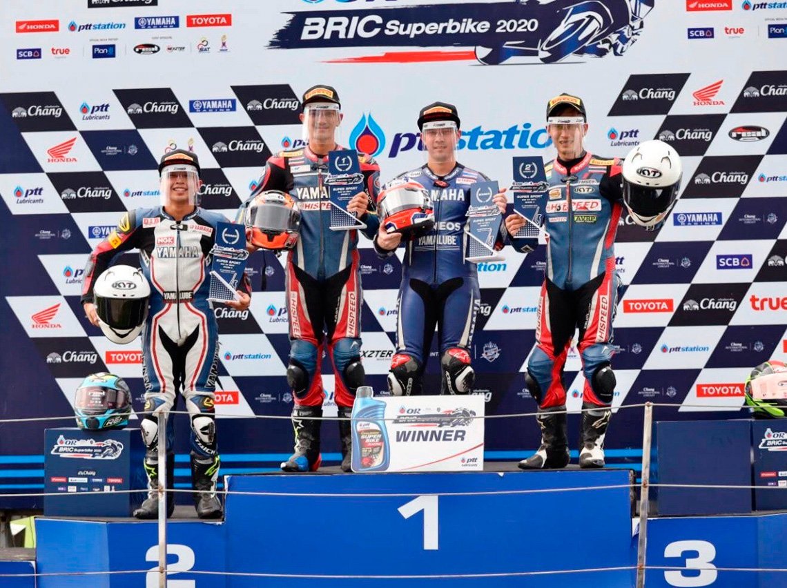 “โฟลท” รัฐพงษ์ วิไลโรจน์ #56 ยอดนักบิดไทยดีกรีแชมป์เอเชียจาก ยามาฮ่า ไทยแลนด์ เรซซิ่งทีม สร้างผลงานระดับมาสเตอร์พีซ ผงาดคว้าชัยชนะศึกชิงแชมป์ประเทศไทย รายการ โออาร์ บีอาร์ไอซี ซูเปอร์ไบค์ แชมเปี้ยนชิพ สนาม 3 รุ่น ซูเปอร์สปอร์ต 600 ซีซี สมราคาดีกรีแชมป์เอเชีย ขณะ 2 นักบิดทีมอิสระอย่าง “ฟอง” คณาทัต ใจมั่น #90 และ “เอ้” วรพงศ์ มาลาหวล #146 จาก ยามาฮ่า พิเรลลี ไฮสปีด ตามเข้าป้ายอันดับ 2-3 ส่งผลให้รถแข่ง R6 กวาดโพเดี้ยมหลังเกมสุดเข้มข้น ที่ สนามช้างฯ จ.บุรีรัมย์
