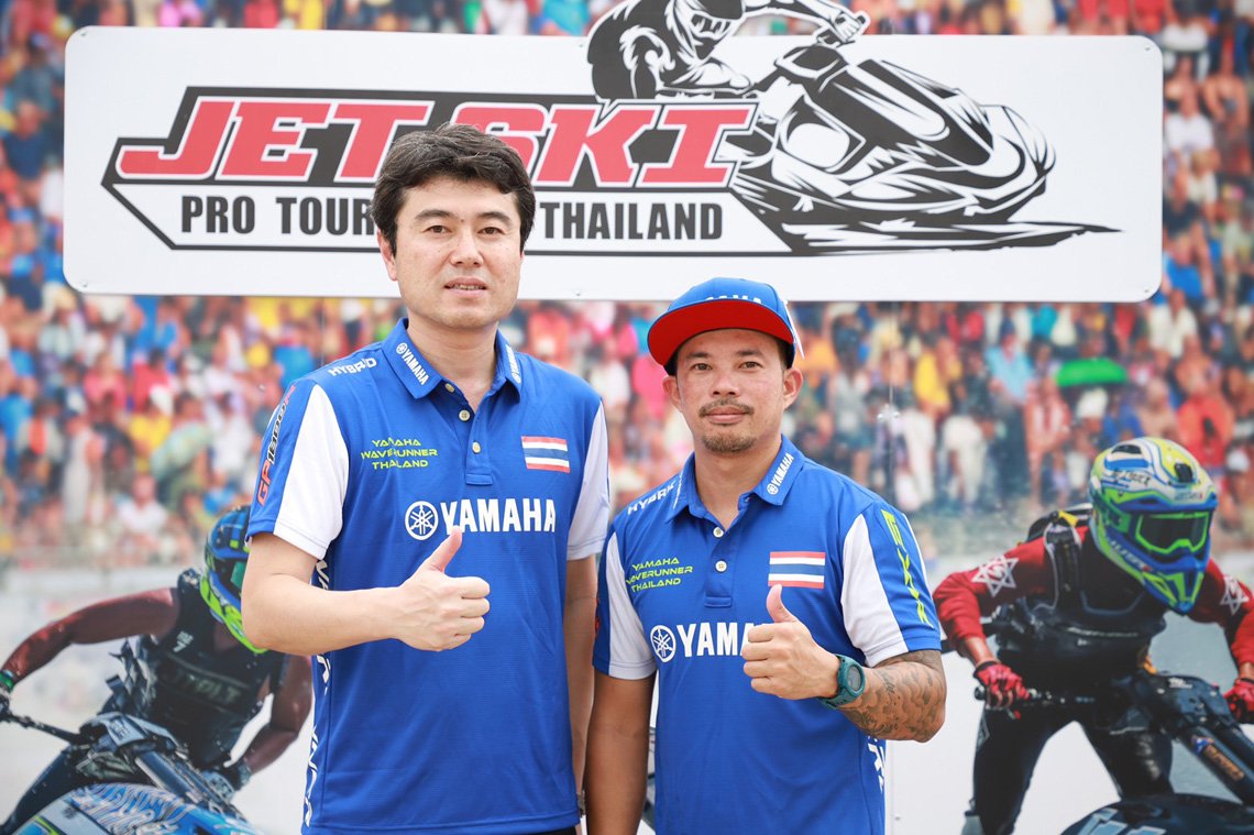 มร.ทัตสึยะ โนซากิ ประธานกรรมการบริหาร พร้อมด้วยผู้บริหารระดับสูง บริษัท ไทยยามาฮ่ามอเตอร์ จำกัด ( คนที่ 3 จากซ้าย ) ร่วมแสดงความยินดีกับ ธีระ เสร็จธุระ #52 นักแข่งสังกัดทีม ยามาฮ่า เวฟรันเนอร์ ไทยแลนด์ทีม ที่ควบ ยามาฮ่า เวฟรันเนอร์ รุ่น เอฟแซดอาร์ เอสวีเอชโอ คว้าแชมป์ประจำปี 2020 ในรุ่น โปร-แอม รันอเบาท์ ลิมิเต็ด ในการแข่งขันชิงแชมป์ประเทศไทย รายการ เจ็ตสกีโปรทัวร์ 2020 อย่างยิ่งใหญ่ โดยธีระ เสร็จธุระ #52 สามารถคว้าชัยชนะได้ในการแข่งขันทำคะแนนสะสมเหนือคู่แข่ง พร้อมคว้าสิทธิ์การเป็นตัวแทนประเทศไทยไปร่วมการแข่งขันรายการ เอเชียน บีช เกมส์ 2020 ณ เมืองซานย่า มณฑลไหหลำ ประเทศสาธารณรัฐประชาชนจีน ระหว่างวันที่ 2 – 10 เมษายน 2564