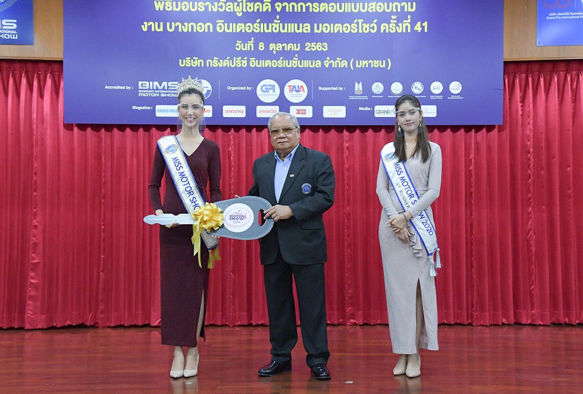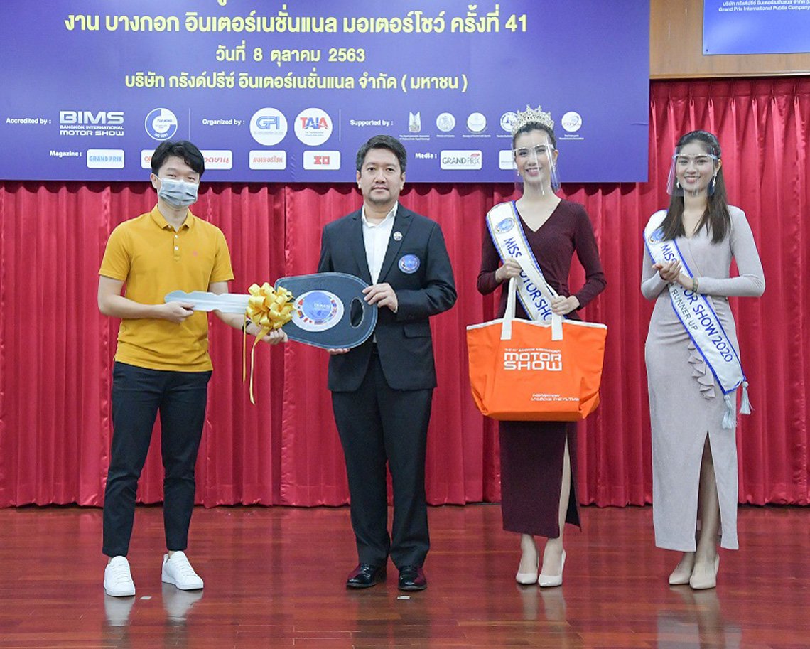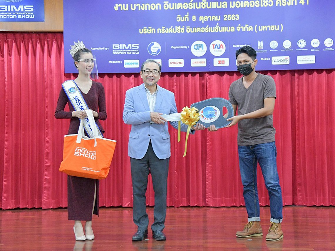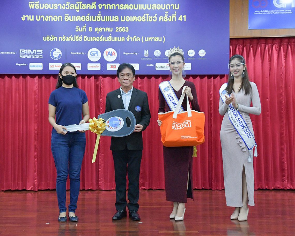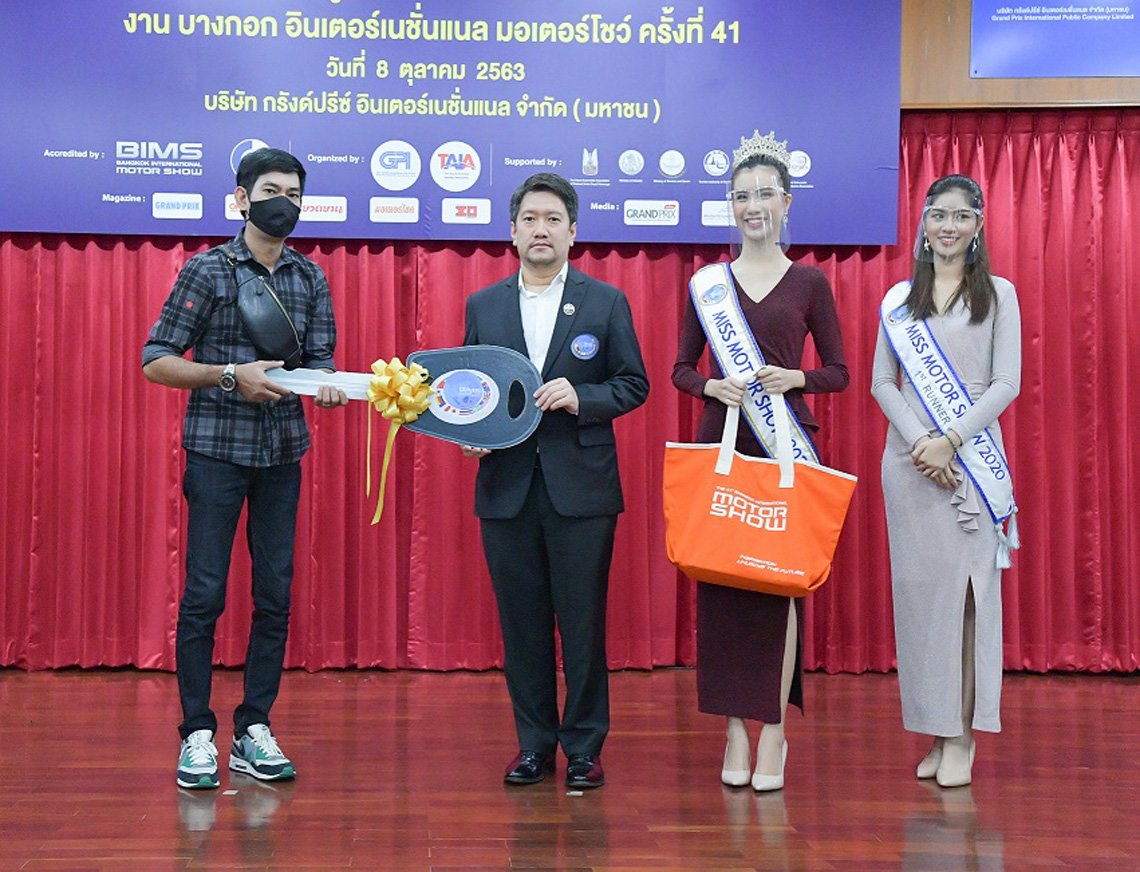 บริษัท กรังด์ปรีซ์ อินเตอร์เนชั่นแนล จำกัด (มหาชน) ผู้จัดงาน “บางกอก อินเตอร์เนชั่นแนล มอเตอร์โชว์” จัดพิธีส่งมอบรางวัลแก่ผู้โชคดี จากการตอบแบบสอบถามผ่านช่องทาง www.bangkok-motorshow.com และ ผ่านทาง Application Car Buddy by GPI เพื่อชิงรางวัล รถยนต์และรถจักรยานยนต์ ในงาน “บางกอก อินเตอร์เนชั่นแนล มอเตอร์โชว์” ครั้งที่ 41 ซึ่งจัดขึ้นระหว่างวันที่ 15-26 กรกฏาคม 2563 โดยมีพิธีจับรางวัลท่ามกลางสื่อมวลชนและแขกผู้มีเกียรติที่ร่วมเป็นสักขีพยาน ณ บริเวณจุดโชว์รถรางวัล Lucky Draw อาคารชาเลนเจอร์ 1 อิมแพ็ค เมืองทองธานี ในวันที่ 26 กรกฏาคม 2563 ที่ผ่านมา