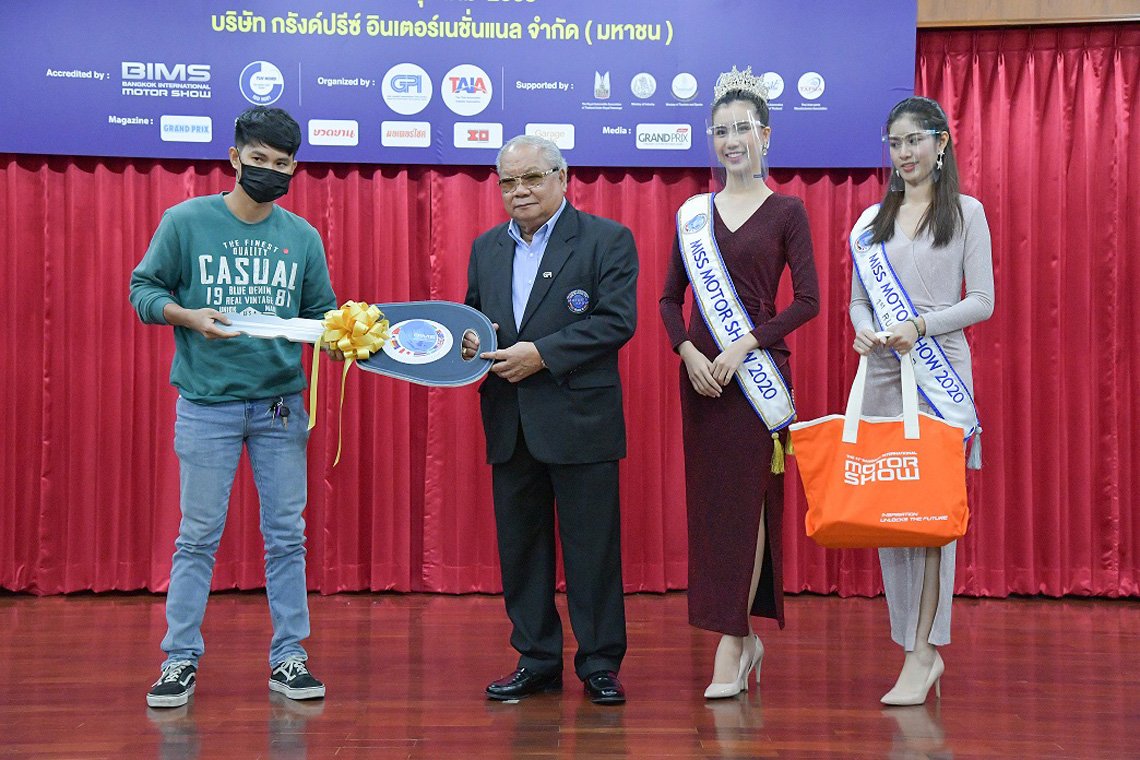 ก่อนปิดท้ายด้วยการส่งมอบรางวัลจากการประกวดมิสมอเตอร์โชว์ 2020 เมื่อวันที่ 19 กุมภาพันธ์ 2563 ที่ผ่านมา ได้แก่รถยนต์ Ford Ranger DBL 2.2 XLT Hi-Rider 6AT ให้กับนางสาวสุชานุช ธรรมวงศ์ มิสมอเตอร์โชว์ 2020 และรถจักรยานยนต์ Yamaha GT125 ให้กับนางสาวอิสริยาภรณ์ ถมยางกูร รองอันดับ 1 พร้อมกันภายในงานฯ ณ ห้องประชุมใหญ่ อาคาร 2 ชั้น 4 บริษัท กรังด์ปรีซ์ อินเตอร์เนชั่นแนล จำกัด (มหาชน) เมื่อวันที่ 8 ตุลาคม 2563