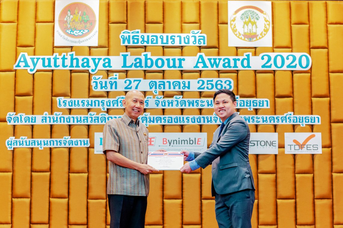เมื่อเร็วๆ นี้ คุณวันชัย ลี้นะวัฒนา ประธานเจ้าหน้าที่บริหาร บริษัท เอช เซม มอเตอร์ จำกัด (ขวามือ) เข้ารับรางวัล Ayutthaya Labour Award 2020 และเกียรติบัตรการจัดการด้านยาเสพติดในสถานประกอบกิจการตามโครงการโรงงานสีขาว ประจำปี 2563 ซึ่งได้ผ่านการคัดเลือกจากสำนักงานสวัสดิการและคุ้มครองแรงงาน จังหวัดพระนครศรีอยุธยา โดยได้รับเกียรติจาก คุณพรพจน์ บัณฑิตยานุรักษ์ รองผู้ว่าราชการจังหวัดพระนครศรีอยุธยา (ซ้ายมือ) เป็นผู้มอบรางวัล ณ ห้องแกรนด์บอลรูม โรงแรมกรุงศรีริเวอร์ จังหวัดพระนครศรีอยุธยา