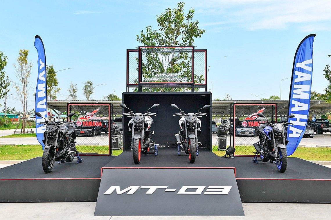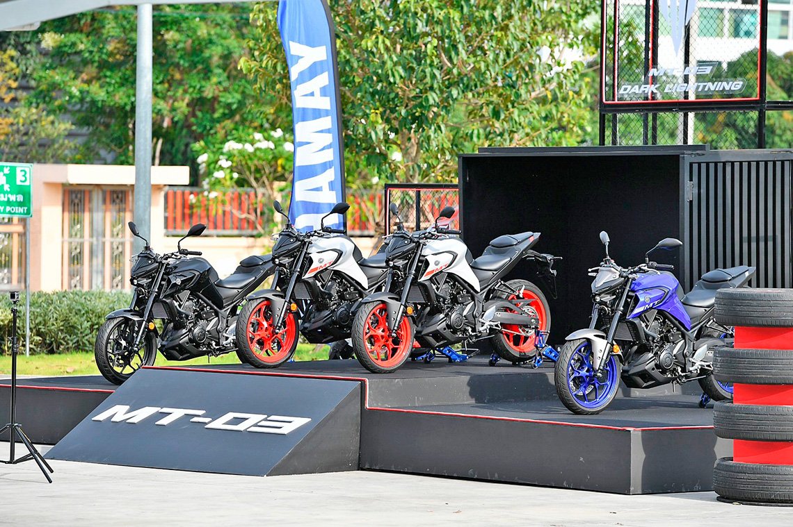 บริษัท ไทยยามาฮ่ามอเตอร์ จำกัด พร้อมรุกตลาดสปอร์ตเนคเก็ตไบค์คลาส 300 ครั้งใหม่!!! เชิญสื่อมวลชนชั้นนำของเมืองไทยร่วมขับขี่ทดสอบและสัมผัสสมรรถนะของ New MT-03 ใหม่!! Dark Lightning ที่สุดในคลาส 300 กับ Sport Naked ของยามาฮ่า โดย New MT-03 ใหม่!! มาพร้อมกับขุมพลังเครื่องยนต์ขนาด 321 ซีซี ที่ให้อัตราเร่งสุดเร้าใจทุกการบิดคันเร่ง พร้อมด้วยการออกแบบดีไซน์ใหม่ สุดเท่ ดุดัน ตั้งแต่หัวจรดท้าย ด้วยชุดไฟหน้า FULL LED แบบ TWIN-EYES และเทคโนโลยี MONO FOCUS LED, เรือนไมล์หน้าจอใหม่แบบ Full LCD โดดเด่นเห็นชัดครบทุกฟังก์ชั่น พร้อมตอบสนองการขับขี่ที่เร้าใจมากยิ่งขึ้นด้วยโช้คหน้า TELESCOPIC แบบ UPSIDE DOWN เพิ่มความมั่นใจด้วยระบบเบรก ABS