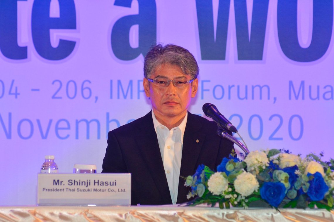 มร. ชินจิ ฮะสึอิ, President บริษัท ไทยซูซูกิมอเตอร์ จำกัด กล่าวว่า ซูซูกิ มีข่าวดีจากการแข่งขันรถจักรยานยนต์ทางเรียบระดับโลกอย่าง MotoGP ซึ่งเป็นรายการที่เป็นที่สุดของการแข่งขันรถจักรยานยนต์ โดย Joan Mir สามารถคว้าแชมป์โลกมาครองได้ก่อนที่การแข่งขันจะจบฤดูกาล ตลอดจน Team Suzuki Ecstar ก็สามารถคว้าแชมป์ประเภท Team ในรายการนี้ได้อีกด้วย ถือได้ว่าเป็นการฉลองครบรอบ 100 ปีที่ซูซูกิก่อตั้งมาทีเดียว นอกจากนี้ บริษัท ไทยซูซูกิมอเตอร์ จำกัด ได้ผลิตเครื่องยนต์เรือ และมียอดการผลิตเครื่องยนต์เรือครบ 1 ล้านเครื่องในเดือนพฤศจิกายนปีนี้ นับได้ว่าปีนี้จึงเป็นปีแห่งการรำลึกที่น่าจดจำของกลุ่มในเครือ บริษัท ซูซูกิ อย่างแท้จริง