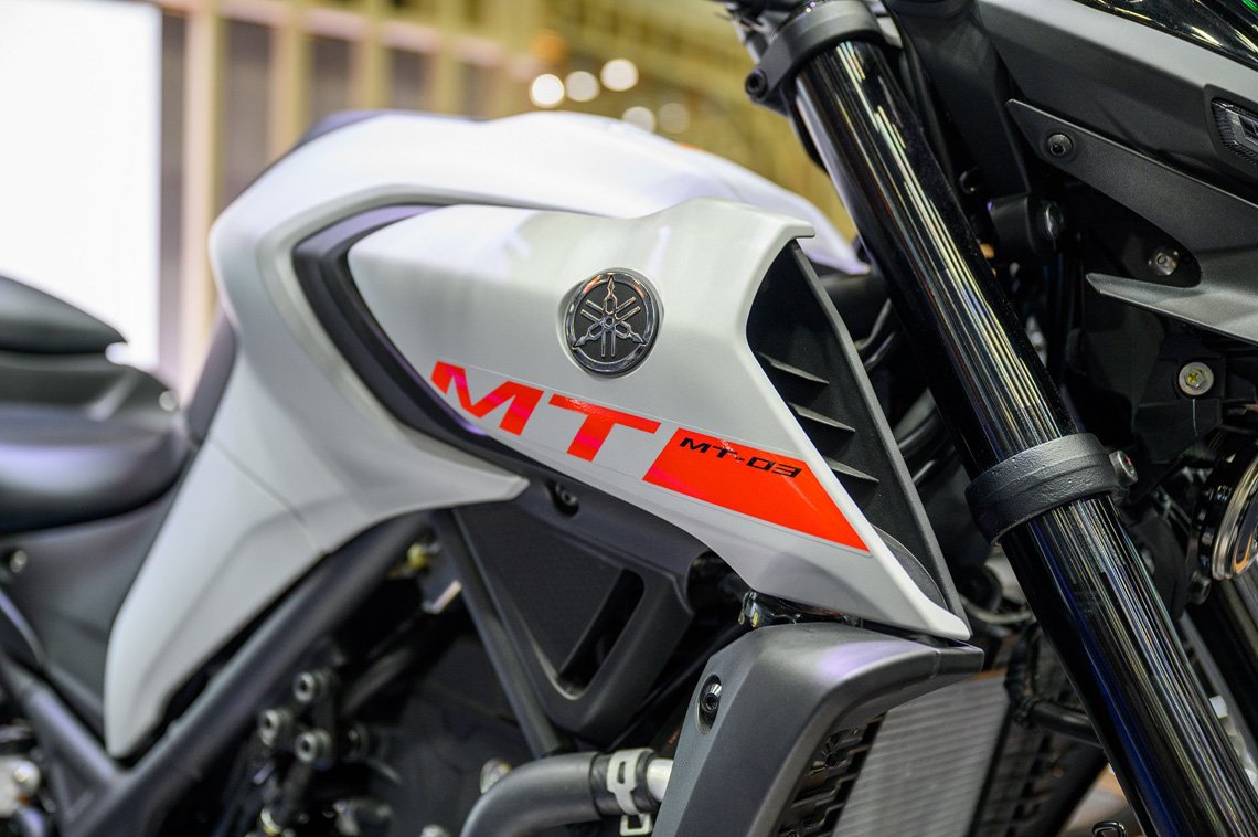 สำหรับ NEW YAMAHA MT-03 ได้รับการปรับโฉมใหม่ที่โดดเด่น สะดุดตา เท่ ดุดัน ซึ่งถอดแบบมาตามสไตล์ MT-Series ด้วยชุดไฟหน้า FULL LED แบบ TWIN-EYES และเทคโนโลยี MONO FOCUS LED ที่ใช้ในรถ Big Bike ให้ความสว่างชัดทุกระยะการขับขี่, ถังน้ำมันรูปทรงใหม่ ดีไซน์เพิ่มความเท่ ดุดัน สไตล์ Big Bike สะท้อนเอกลักษณ์ MT-Series พร้อมให้ความกระชับในการขับขี่ยิ่งขึ้น และเพิ่มภาพลักษณ์สุดหรูที่มาพร้อมกับความเร้าใจด้วยโช้คหน้า TELESCOPIC แบบ UPSIDE DOWN ที่ช่วยให้สมรรถนะการขับขี่ การทรงตัว การซับแรงสั่นสะเทือนที่ดีขึ้นทั้งในช่วงทางตรงและทางโค้ง พร้อมหยุดรถได้อย่างมั่นใจในทุกสถานการณ์ด้วยระบบเบรก ABS
