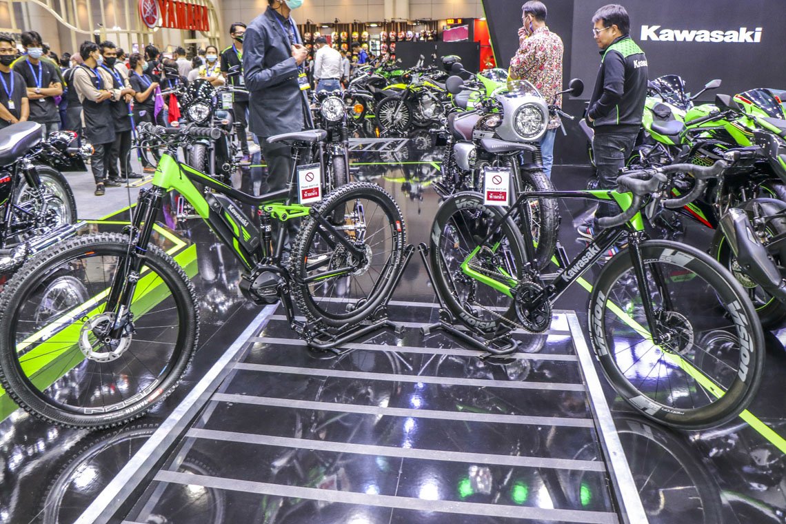 และธุรกิจใหม่ “รถจักรยาน” ภายใต้แบรนด์คาวาซากิ ซึ่งได้เปิดตัวอย่างเป็นทางการพร้อมเปิดให้จองภายในงานทั้ง 2 รุ่น ได้แก่ รถจักรยานเสือภูเขาไฟฟ้า Kawasaki E-MTB ราคา 218,000บาท และ รถจักรยานทางเรียบ Kawasaki Road Bike ราคา 349,000 บาท
