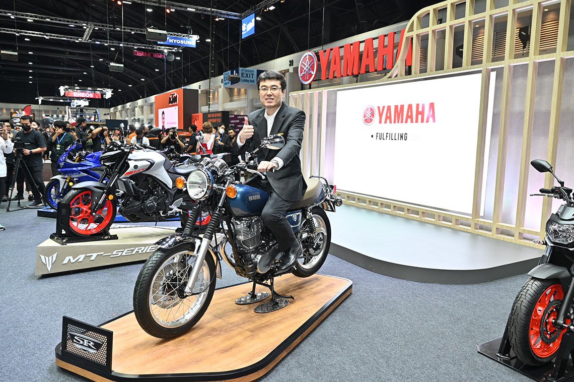 มร.เท็ตสึยะ โนซากิ ประธานกรรมการบริหาร นายพงศธร เอื้อมงคลชัย รองประธานกรรมการบริหาร พร้อมด้วยผู้บริหารระดับสูง บริษัท ไทยยามาฮ่ามอเตอร์ จำกัด ร่วมเปิดตัวรถจักรยานยนต์ YAMAHA SR400 ใหม่ ภายในงานมหกรรมยานยนต์ครั้งที่ 37 โดย YAMAHA SR400 ใหม่ Born to be Legend ตำนานแห่ง Big Single ลูกสูบเดี่ยวขนาด 399 ซีซี และ Kick Start อันเป็นเอกลักษณ์ของรถสไตล์เฮอริเทจ ที่ถูกส่งผ่านจากรุ่นสู่รุ่น จนกลายเป็นมนต์เสน่ห์ของ FASTER SON