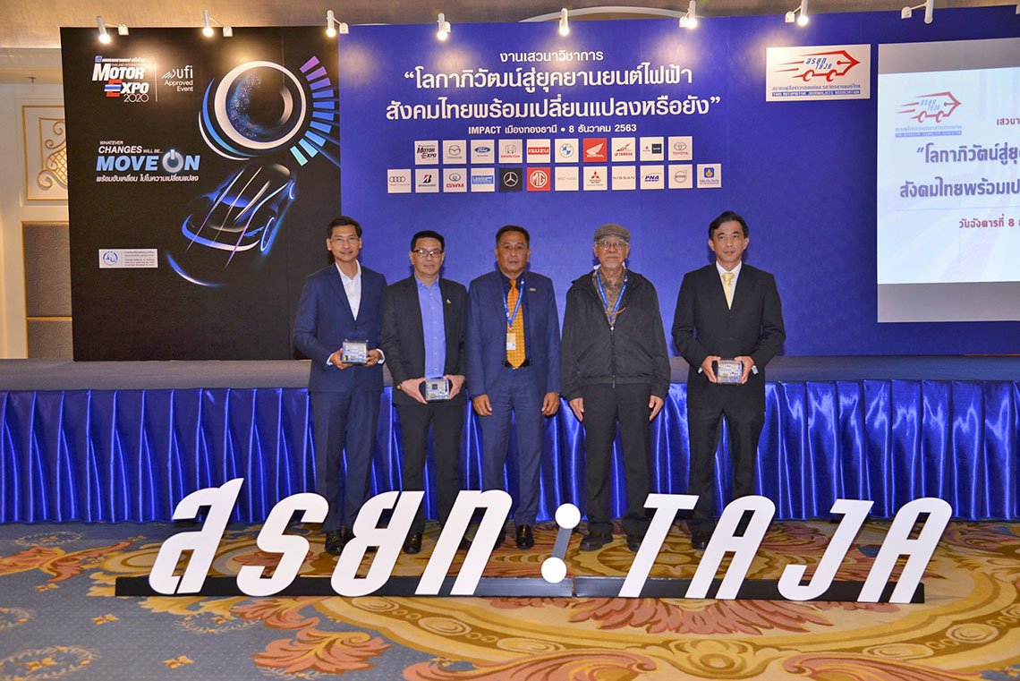 สมาคมผู้สื่อข่าวรถยนต์และรถจักรยานยนต์ไทย (สรยท.) จัดงานเสวนาทางวิชาการ เปิดมุมมองเรื่องรถยนต์ไฟฟ้า จากผู้เชี่ยวชาญที่คร่ำหวอดอยู่ในอุตสาหกรรมยานยนต์ของประเทศไทย ในหัวข้อ “โลกาภิวัตน์สู่ยุคยานยนต์ไฟฟ้า สังคมไทยพร้อมเปลี่ยนแปลงหรือยัง” โดยมีนายวชิระ เรืองมาลัย นายกสมาคมผู้สื่อข่าวรถยนต์และรถจักรยานยนต์ไทย (สรยท.) กล่าวรายงานถึงวัตถุประสงค์ของการจัดสัมมนาในครั้งนี้ การสัมมนาในครั้งนี้มีวิทยากรผู้ทรงคุณวุฒิมาให้ความกระจ่างชี้เทรนด์ตลาดรถยนต์ไฟฟ้าทั้งในประเทศไทย และทั่วโลก ประกอบด้วย นายกฤษฎา อุตตโมทย์ นายกสมาคมยานยนต์ไฟฟ้าไทย, นายธนพัชร์ สุขสุธรรมวงศ์ ที่ปรึกษาโครงการผู้เชี่ยวชาญ บริษัท พลังงานมหานคร จำกัด, นายองอาจ พงศ์กิจวรสิน นายกสมาคมอุตสาหกรรมยานยนต์ไทย และนายพงศ์ศักดิ์ เลิศฤดีวัฒนวงศ์ รองกรรมการผู้จัดการ บริษัท เอ็มจี เซลส์ (ประเทศไทย) จำกัด โดยได้รับเกียรติจากนายขวัญชัย ปภัสร์พงษ์ ประธานจัดงานมหกรรมยานยนต์ ครั้งที่่ 37 มากล่าวปาฐกถาพิเศษกล่าวเปิดการสัมมนาในครั้งนี้อีกด้วย