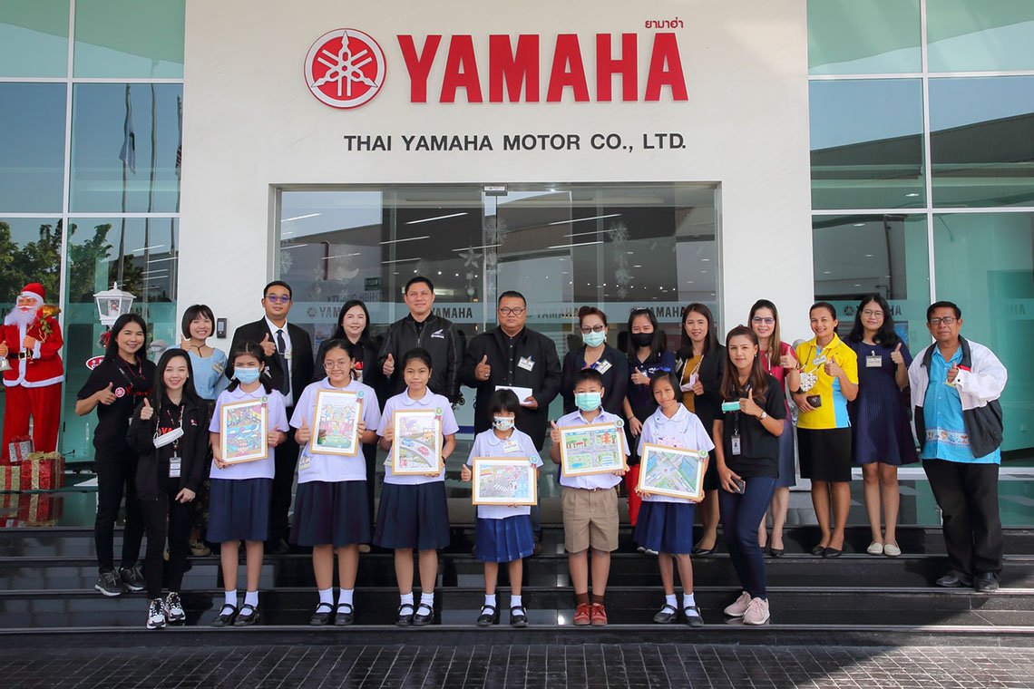 นายสุรชัย เพชรพงษ์ ผู้จัดการทั่วไปฝ่ายบริหารงานทั่วไป และนางเจริญรัตน์ เลิศอานันท์ภร ผู้จัดการส่วนองค์กรสัมพันธ์ บริษัท ไทยยามาฮ่ามอเตอร์ จำกัด ร่วมถ่ายภาพพร้อมมอบทุนการศึกษาให้แก่นักเรียนที่ชนะเลิศการประกวดวาดภาพ ในหัวข้อ การจราจรในฝัน “Traffic in My Dream” เพื่อเป็นการร่วมปลูกฝังจิตสำนึก และสร้างความตระหนักในการเคารพกฎจราจรและการอยู่ร่วมกันในสังคมอย่างปลอดภัยให้แก่เด็กและเยาวชน ซึ่งเป็นหนึ่งในโครงการ YAMAHA ROAD SAFETY FOR CHILDREN ที่ยามาฮ่าร่วมสร้างจิตสำนึกในการเคารพกฎจราจรและการขับขี่ที่ถูกวิธีให้กับเยาวชน