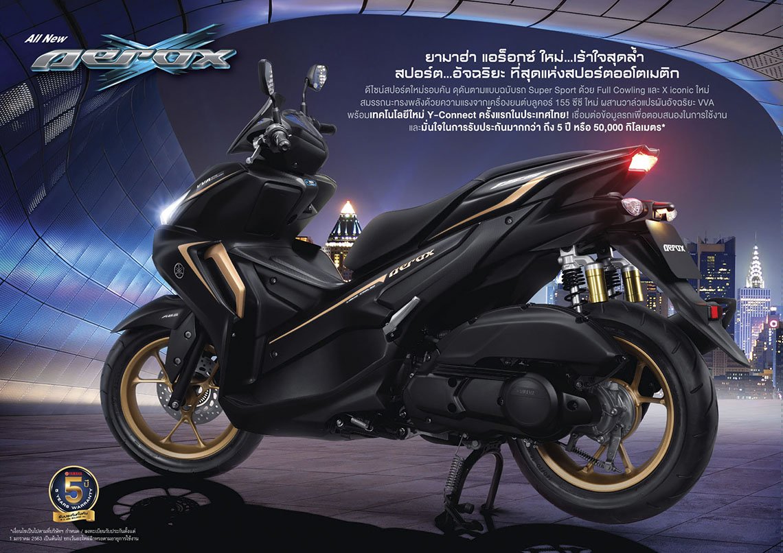 บริษัท ไทยยามาฮ่ามอเตอร์ จำกัด เดินหน้าตอกย้ำความเป็นผู้นำรถจักรยานยนต์ออโตเมติกของเมืองไทยอย่างไม่หยุดยั้ง พร้อมรุกตลาดฝ่าวิกฤติการแพร่ระบาดโรคโควิด-19 และกระตุ้นตลาดรถจักรยานยนต์ให้คึกคักยิ่งขึ้น ด้วยการเปิดตัวรถจักรยานยนต์รุ่นใหม่ล่าสุด All New YAMAHA AEROX…SPORT AUTOMATIC LEADER สปอร์ต…อัจฉริยะ ที่สุดแห่งสปอร์ตออโตเมติก ที่มาพร้อมกับดีไซน์สปอร์ตใหม่รอบคัน ดุดันตามแบบฉบับรถ Super Sport สายพันธุ์ R-Series DNA ด้วย Full Cowling พร้อม Air Management Layer Design และ X Iconic ใหม่! สมรรถนะทรงพลังด้วยความแรงจากเครื่องยนต์บลูคอร์ 155 ซีซี ใหม่! ผสานวาล์วแปรผันอัจฉิรยะ VVA พร้อมเทคโนโลยีใหม่ Y-Connect ครั้งแรกในประเทศไทยของรถคลาส 150 ซีซี! เชื่อมต่อข้อมูลรถเพื่อตอบสนองไลฟ์สไตล์ทันสมัยทุกการใช้งาน และมั่นใจในการรับประกันมากกว่าถึง 5 ปี หรือ 50,000 กิโลเมตร