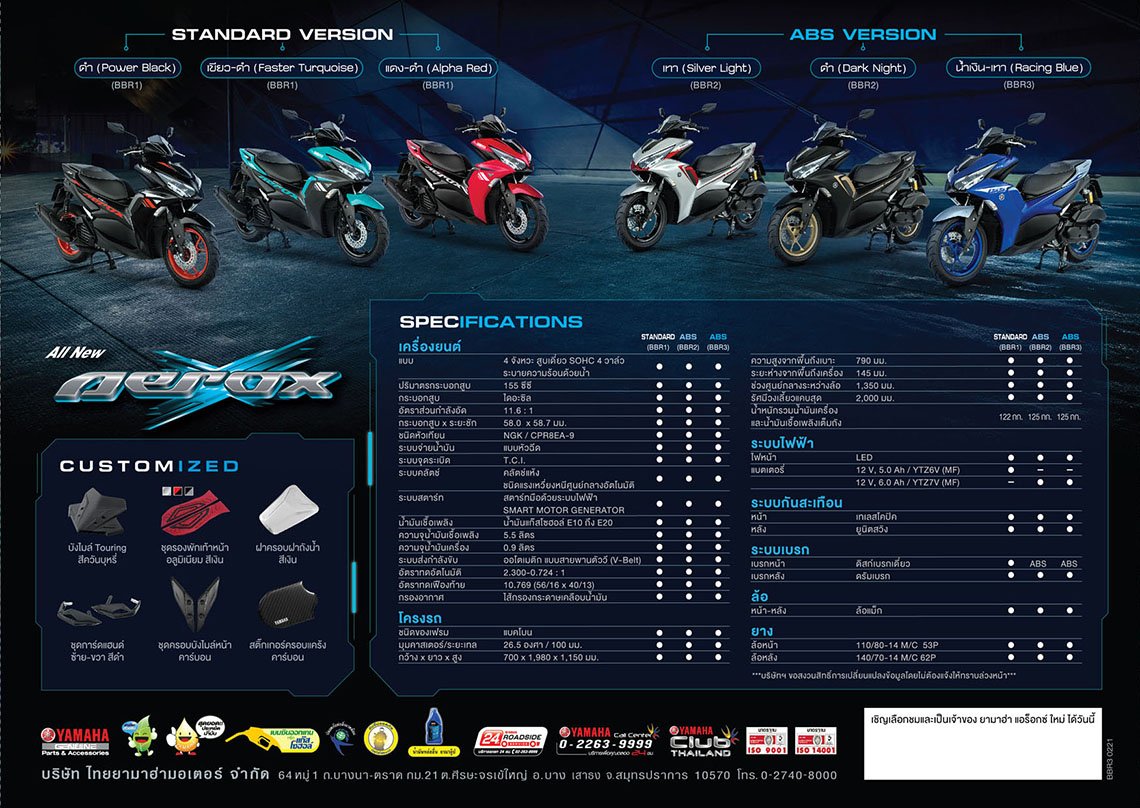 โดยสามารถพบกับรถจักรยานยนต์ All New YAMAHA AEROX…SPORT AUTOMATIC LEADER สปอร์ต…อัจฉริยะ ที่สุดแห่งสปอร์ตออโตเมติก ได้ที่ร้านผู้จำหน่ายรถจักรยานยนต์ยามาฮ่าทั่วประเทศ สอบถามรายละเอียดเพิ่มเติมได้ที่ Yamaha Call Center โทร. 02-263- 9999 และสามารถติดตามข้อมูลข่าวสารทางออนไลน์ได้ที่
