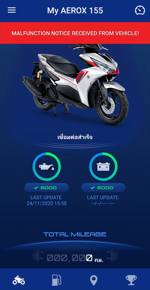 3. MALFUNCTION NOTIFICATION - แจ้งเตือนเครื่องยนต์เกิดปัญหา เมื่อเครื่องยนต์มีความผิดปกติจะมีการแจ้งเตือนให้ทราบบนมือถือเมื่อมีการเชื่อมต่อกับแอฟ Y-Connect โดยเจ้าของรถสามารถตั้งค่าให้ส่งข้อมูล สถานที่ เวลา และอื่นๆ แจ้งไปยังศูนย์บริการตัวแทนจำหน่ายยามาฮ่าที่กำหนดได้โดยอัตโนมัติอีกด้วย