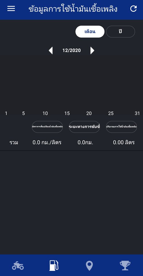 4. FUEL CONSUMPTION - แสดงข้อมูลการใช้น้ำมันเชื้อเพลิง โดยจะแสดงอัตราการสิ้นเปลืองน้ำมันเชื้อเพลิงโดยเฉลี่ยกับระยะทางในการขับขี่ ซึ่งผู้ขับขี่สามารถที่จะเลือกดูได้ทั้งแบบรายวันหรือรายเดือน ทำให้สามารถจะประเมินค่าใช้จ่ายของน้ำมันเชื่อเพลิงได้