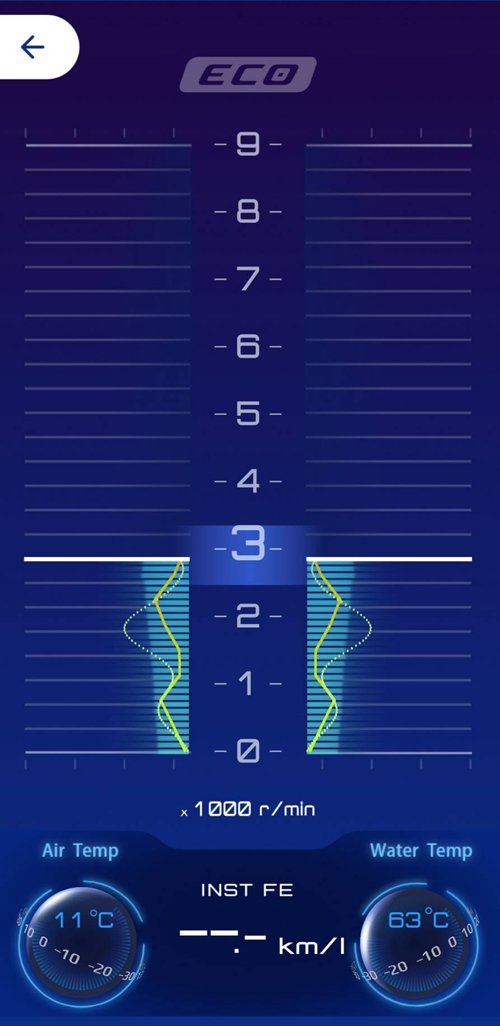 5. REVS DASHBOARD – แสดงมาตรวัดสมรรถนะขณะขับขี่ โดยจะแสดงข้อมูลการทำงานต่างๆ ของเครื่องยนต์ในการขับขี่แบบ Real Time เมื่อเปิดแอฟ Y-Connect ขึ้นบนหน้าจอมือถือ ซึ่งจะมีกราฟฟิคแสดงระดับการเปิดของลิ้นเร่ง - จำนวนการหมุนของเครื่องยนต์ต่อนาที - อัตราเร่งวัดการขับขี่แบบประหยัดพลังงาน – อุณหภูมิหม้อน้ำ – อุณหภูมิอากาศในห้องเครื่อง ด้วยกราฟิกเคลื่อนไหว 2 สไตล์ โดยผู้ขับขี่สามารถเลือกดูได้ตามต้องการ ทำให้สนุกกับการขับขี่ได้มากขึ้น