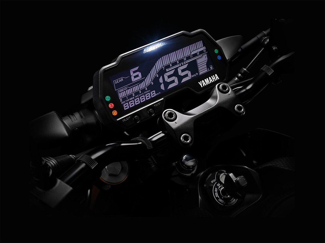 NEW YAMAHA MT-15 ยังโดดเด่นด้วยเอกลักษณ์ของสายดาร์คตัวจริง ซึ่งมาพร้อมกับฟีเจอร์ที่บ่งบอกเอกลักษณ์เฉพาะตัวตามสไตล์ MT-Series ดุดันด้วยไฟหน้าที่มาพร้อมเทคโนโลยีใหม่ MONO FOCUS LED สว่างชัดทุกระยะการขับขี่, หน้าปัด NEGATIVE LCD เด่นชัด มีสไตล์ด้วย MULTI-FUNCTION พร้อมตัวเลขบอกตำแหน่งเกียร์ ระบบไฟเตือนเปลี่ยนเกียร์ (Shift Light) และสัญลักษณ์บอกการทำงานของระบบ VVA, เบาะนั่ง FREESTYLE RIDING SEAT สนุกได้ไม่มียั้ง คล่องตัวในทุกองศาการขับขี่ และ MT IDENTITY นิยามแบบ MT-Series เอกลักษณ์ของสายดาร์คตัวจริง