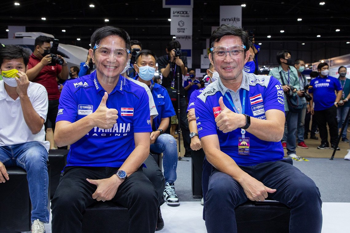 มร.ชินโงะ โอวากิ ผู้จัดการใหญ่ด้านการเงิน พร้อมผู้บริหารบริษัท ไทยยามามอเตอร์ จำกัด ถ่ายภาพร่วมกับดร.อดิศร สินประสงค์ นายกสมาคมวิทยาลัยเทคโนโลยีอาชีวศึกษาเอกชนแห่งประเทศไทย ในพระบรมราชูปถัมภ์ สมเด็จพระเทพรัตนสุดาฯ สยามบรมราชกุมารี พร้อมตัวแทน 15 สถาบันอาชีวศึกษา ในงานแถลงข่าว “YAMAHA MOTO CHALLENGE 2021” Season 7 โดยในปีนี้จะใช้รถ YAMAHA YZF-R15 ในการแข่งขัน พร้อมการอบรมด้านเทคนิคจากผู้เชี่ยวชาญของยามาฮ่า ที่จะถ่ายทอดประสบการณ์ด้านมอเตอร์สปอร์ตโดยเดชา ไกรศาสตร์ และนักแข่งชั้นนำระดับประเทศในสังกัด YAMAHA THAILAND RACING TEAM