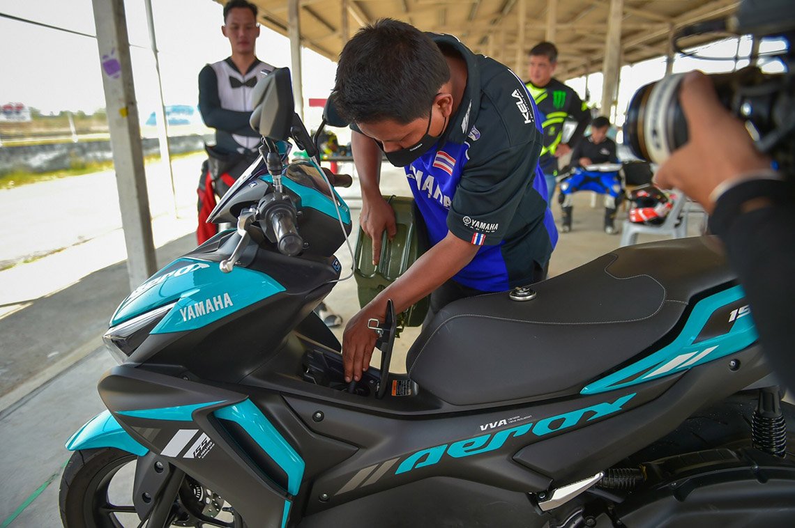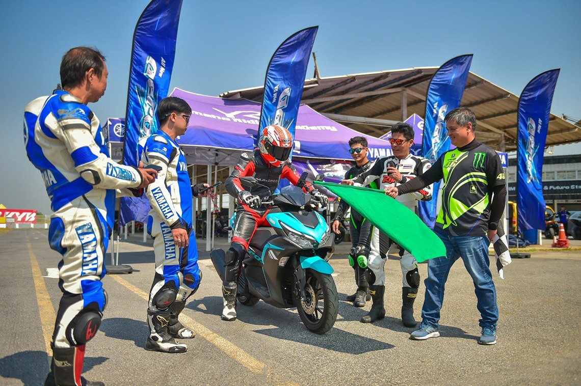 จากการเปิดตัวอย่างเป็นทางการของ All New YAMAHA AEROX ตัวใหม่ล่าสุดกับลูกเล่นใหม่ระบบ Y-Connect ไปจนถึงเครื่องยนต์ใหม่ เฟรมใหม่ ทำให้รู้สึกว่าอยากจะพิสูจน์ความโหดจริงๆ แน่นอนว่าการขับขี่ในสนามแข่งจะเป็นทางออกที่ดีที่สุดในการพิสูจน์ เพราะตัวรถจะต้อง ใช้รอบเครื่องที่สูงตอนออกจากโค้ง เพราะในครั้งนี้เราทดสอบกัน 8 ชั่วโมงโดยไม่พัก และหวังลึกๆ ว่าจะมีสถิติกับเค้าด้วย เพราะมีโหมด Ranking เปรียบเทียบกับผู้ขับขี่ยามาฮ่าทั่วโลก ก็มาจบที่ สนามไทยแลนด์เซอร์กิต นครชัยศรี จึงเปิดรับทีมทดสอบ ด้วยความยินดี