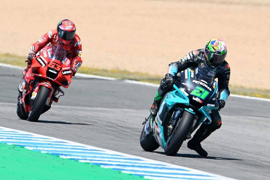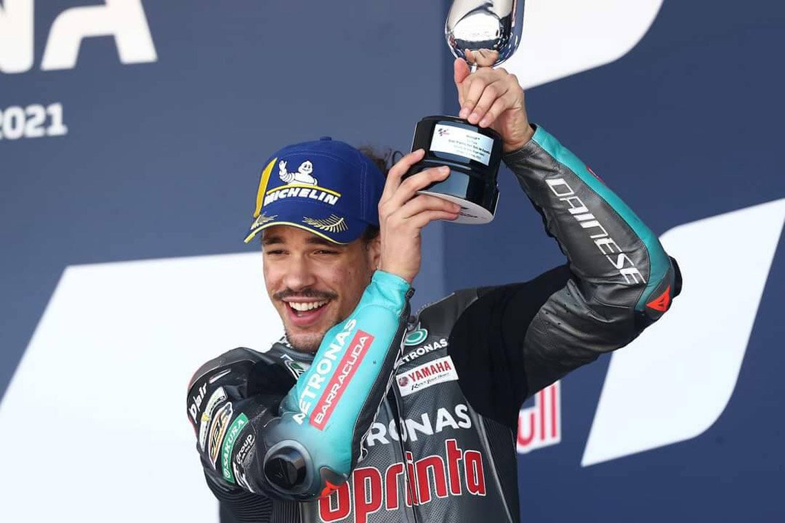 ฟรังโก้ มอร์บิเดลลี่ #21 ดาวบิดอิตาเลียน สังกัดปิโตรนาส ยามาฮ่า เอสอาร์ที ควบรถแข่ง YZR-M1 คว้าโพเดี้ยมแรกในฤดูกาลให้กับตนเอง จากเกมในสนามล่าสุด ศึกโมโตจีพี 2021 เมื่อสุดสัปดาห์ที่ผ่านมา