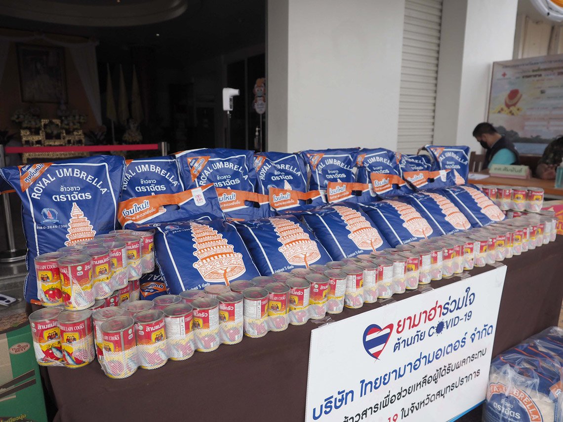 นายสุรชัย เพชรพงษ์ ผู้จัดการทั่วไป ฝ่ายธุรการทั่วไป บริษัท ไทยยามาฮ่ามอเตอร์ จำกัด ถ่ายภาพร่วมกับนายวันชัย คงเกษม ผู้ว่าราชการจังหวัดสมุทรปราการ ในการส่งมอบ ข้าวสารจำนวน 2,000 กิโลกรัม ปลากระป๋อง จำนวน 200 กระป๋อง บะหมี่กึ่งสำเร็จรูป 900 ซอง ไข่ไก่ 1,000 ฟอง และนมกล่อง จำนวน 360 กล่อง เพื่อส่งต่อให้กาชาดจังหวัดสมุทรปราการ ดำเนินการจัดเตรียมใส่ถุงยังชีพและแจกจ่ายให้กับประชาชนในพื้นที่สมุทรปราการ ที่ได้รับผลกระทบจากไวรัสโควิด-19 ได้ใช้ยังชีพยามวิกฤติ