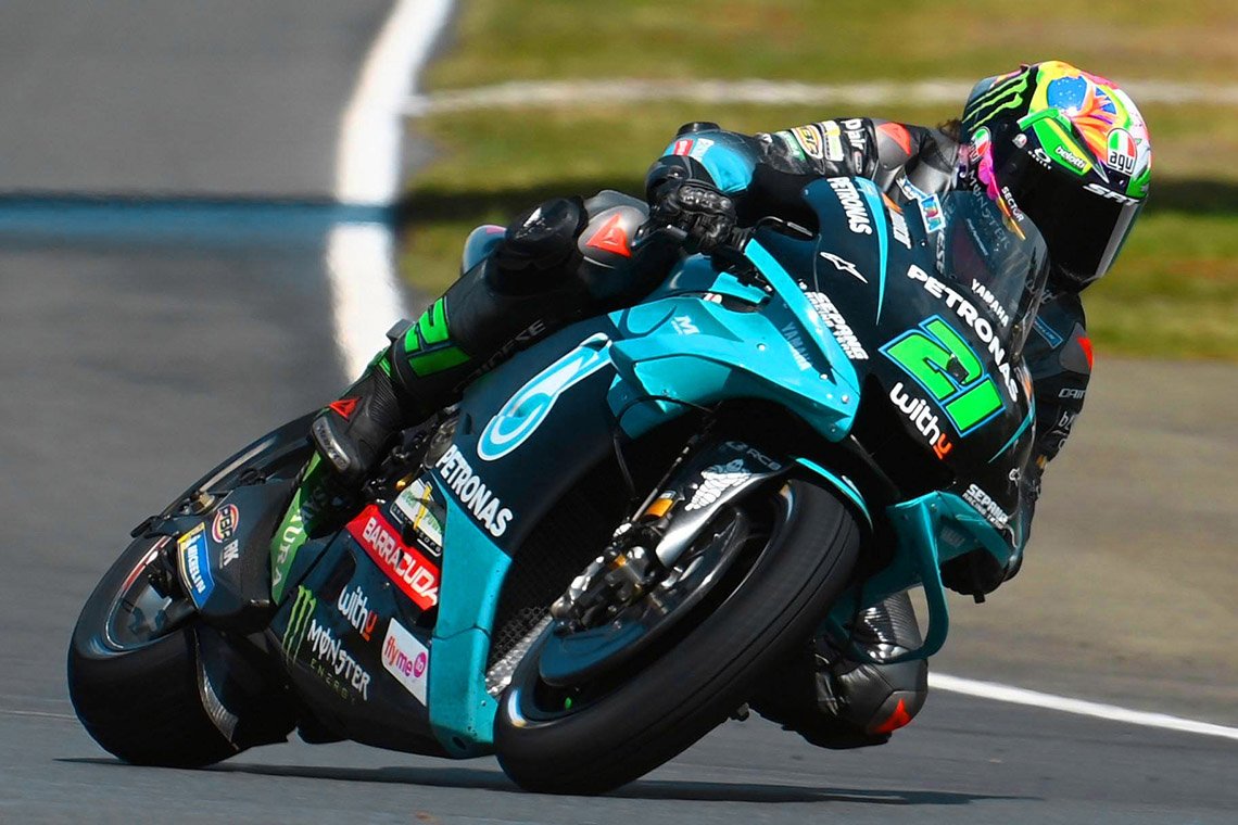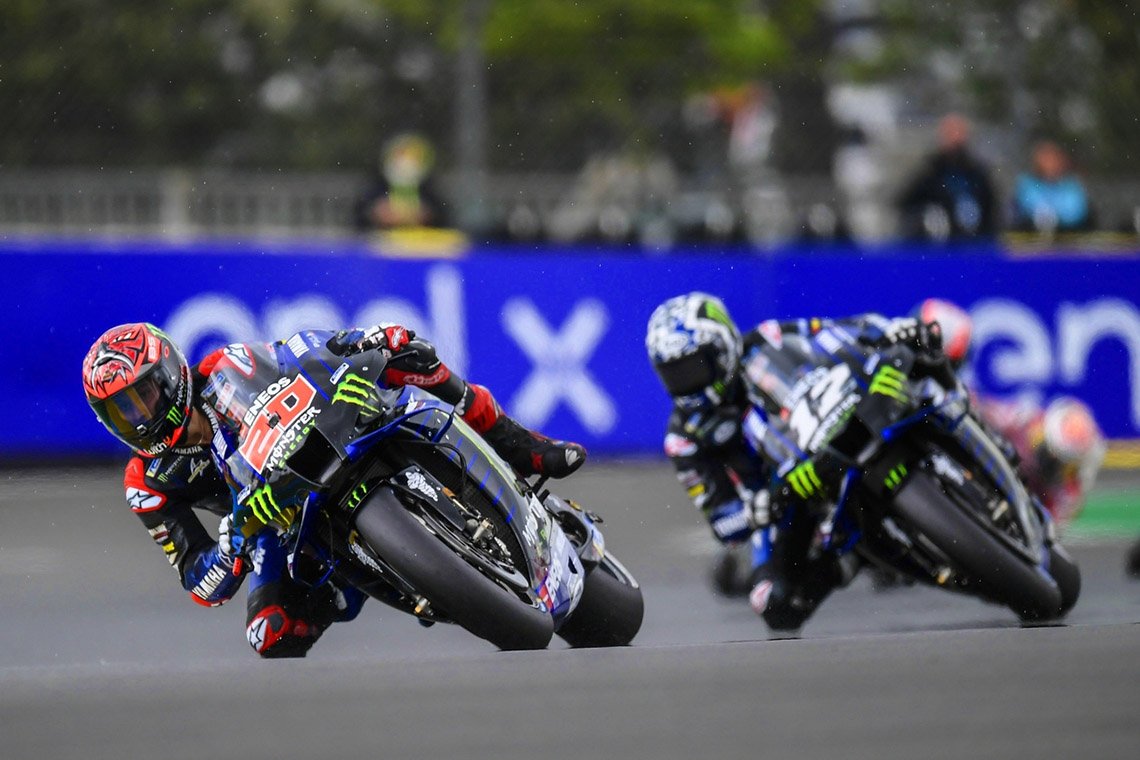 โดย ฟาบิโอ กวาร์ตาราโร่ #20 ดาวบิดเฟรนช์แมน สังกัดมอนสเตอร์ เอเนอร์จี้ ยามาฮ่า โมโตจีพี ประจำการในตำแหน่งโพล ขนาบข้างด้วย ทีมเมทอย่าง มาเวริค บีญาเลส #12 ในกริดสตาร์ทที่ 2