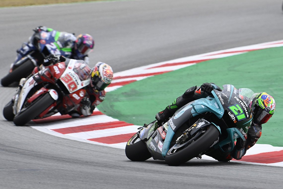 ขณะที่ มาเวริค บีญาเลส #12 บิดจบการแข่งขันในเกมโฮมเรซด้วยอันดับ 5 รวมถึง ฟรังโก้ มอร์บิเดลลี่ #21 ที่ไล่แซงคู่แข่งไต่ขึ้นมาจบการแข่งขันในอันดับ 9 ด้าน วาเลนติโน่ รอสซี่ #46 บิดไม่จบเกมที่ คาตาลุนญ่า หลังพลาดล้มในรอบที่ 16 ส่งผลให้ต้องออกจากการแข่งขันไป