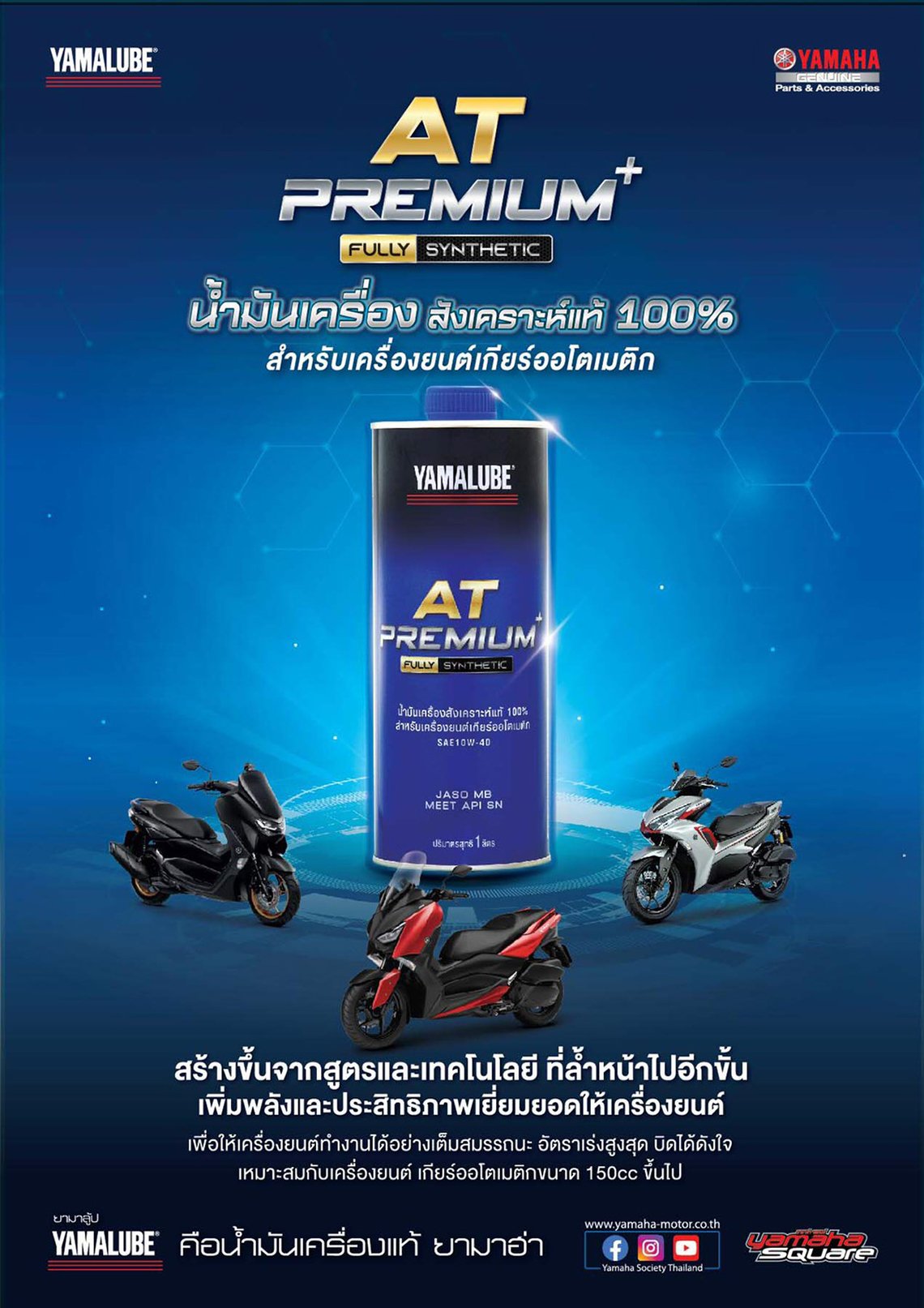 สำหรับ YAMALUBE AT PREMIUM PLUS เป็นน้ำมันเครื่องระดับพรีเมียมสูตรสังเคราะห์ 100% ที่โดดเด่นกว่าน้ำมันเครื่องทั่วไปในท้องตลาดด้วยการเพิ่มคุณสมบัติของสาร Friction Modifier และ Molybdenum ช่วยลดการเสียดสีของโลหะได้อย่างมีประสิทธิภาพ และเคลือบยึดเกาะผิวโลหะได้เป็นอย่างดี ส่งผลทำให้ความร้อนในน้ำมันเครื่องลดลง ช่วยประหยัดการใช้เชื้อเพลิงได้ดีขึ้น เพิ่มประสิทธิภาพให้กับเครื่องยนต์ระบบออโตเมติก จึงเหมาะสำหรับรถจักรยานยนต์ออโตเมติก 150 ซีซี ขึ้นไปโดยเฉพาะ