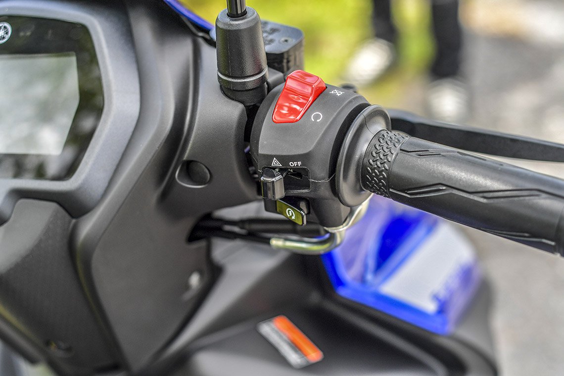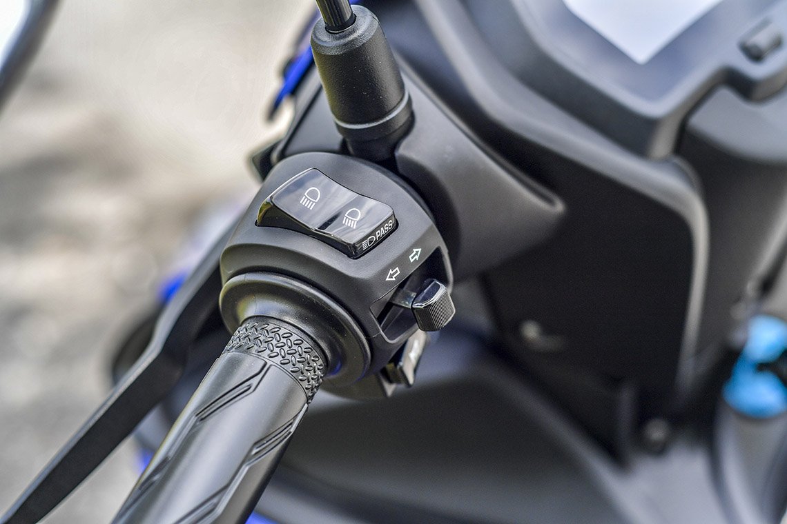 จากนั้นมาดูกันที่แฮนด์ฝั่งขวา ก็จะเจอกับสวิตช์ Run-Off สีแดงขนาดใหญ่ ถัดลงมาเป็นสวิตช์สำหรับเปิด-ปิดไฟผ่าหมาก และด้านล่างสุดเป็นสวิตช์สตาร์ทเครื่องยนต์ ส่วนที่แฮนด์ฝั่งซ้ายจะเป็นสวิตช์ไฟเปิดไฟสูงที่มาพร้อมกับสวิตช์ไฟขอทางที่ออกแบบให้มีขนาดที่กดใช้งานได้ง่ายและสะดวก ถัดลงมาเป็นสวิตช์ไฟเลี้ยวซ้าย-ขวา และด้านล่างสุดเป็นสวิตช์แตรนั่นเอง และเมื่อลองขยับนิ้วมือเพื่อกำก้านเบรคทางฝั่งขวาและก้านคลัทช์ทางฝั่งซ้าย เราก็รู้สึกได้ว่ามันถูกวางให้อยู่ในตำแหน่งที่พอดิบพอดีทำให้สามารถควบคุมการทำงานของเบรคและคลัทช์ได้อย่างสะดวกและคล่องแคล่วเป็นอย่างยิ่ง โดยเฉพาะก้านคลัทช์นั้นเราสามารถที่จะบีบเพื่อตัดต่อกำลังเครื่องยนต์ได้อย่างรู้สึกนุ่มและเบามือทีเดียว