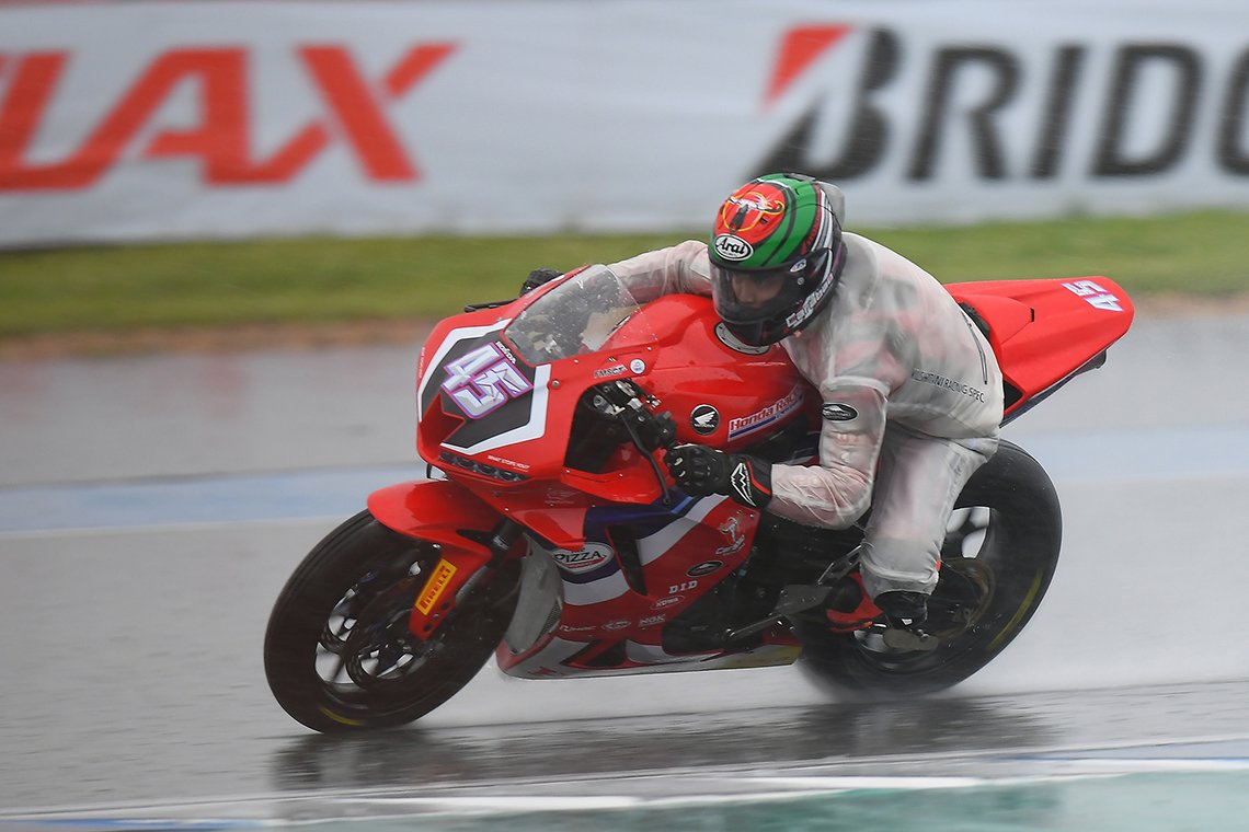 “ติ๊งโน๊ต” ฐิติพงศ์ วโรกร แชมป์สองสนามซ้อน จาก คาวาซากิ ไทยแลนด์ เรซซิ่ง ทีม ทะยานคว้าอันดับ 1 ในการซ้อมวันแรกของ ศึกซูเปอร์ไบค์ชิงแชมป์ประเทศไทย “โออาร์ บีอาร์ไอซี ซูเปอร์ไบค์” สนาม 3 ขณะ “ดรีม” สิทธิศักดิ์ อ่อนเฉวียง จาก ฮอนด้า เรซซิ่ง ไทยแลนด์ ฝ่าฝนครองจ่าฝูงในรุ่น ซูเปอร์สปอร์ต 600 ซีซี หลังทุกรุ่นลงบิดท่ามกลางสายฝนที่กระหน่ำลงมาอย่างหนัก ก่อนลุ้นเดือดวันอาทิตย์นี้ ที่ สนามช้าง อินเตอร์เนชั่นแนล เซอร์กิต จ.บุรีรัมย์