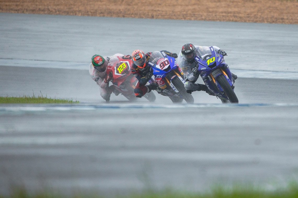 โฟลท - รัฐพงษ์ วิไลโรจน์ #56 นักบิดสังกัด ยามาฮ่า ไทยแลนด์ เรซซิ่งทีม เปิดเกมบู๊ความมันส์ระดับ 5 ดาว บนแทร็คที่ชุ่มไปด้วยน้ำท่ามกลางสายฝนในเกมแบบ Wet Race ไล่ขย่มคู่แข่งด้วยฟอร์มการขับขี่ที่สุดแสนดุเดือด ก่อนที่จะกระชากคันเร่งรถแข่งคู่ใจ R6 ลายฉลองครบรอบ 60 ปี การเข้าร่วมการแข่งขันรถจักรยานยนต์ทางเรียบระดับโลกของทีมแข่งยามาฮ่า ทะยานเข้าเส้นชัยรับธงตาหมากรุกเป็นอันดับที่ 1 การแข่งขันรุ่น Super Sport 600cc (SS1) ในรายการ OR BRIC SUPERBIKE 2021 สนาม 3 ที่จัดการแข่งขันขึ้น ณ สนามช้าง อินเตอร์เนชั่นแนล เซอร์กิต จ.บุรีรัมย์