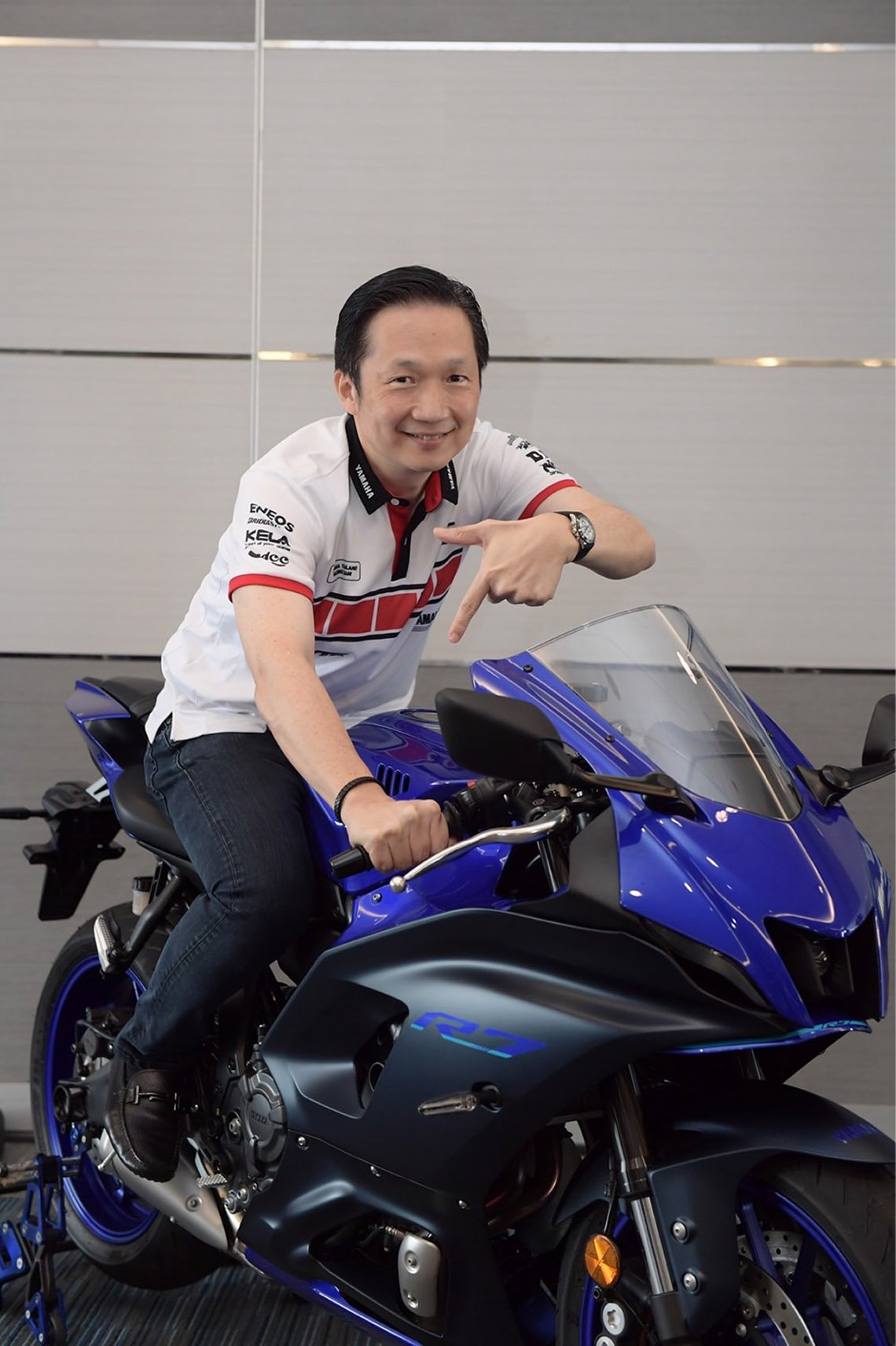 สำหรับคาแรคเตอร์ของ YZF-R7 นั้นใกล้เคียงกับ YZF-R6 ด้วยดีไซน์ภายใต้กลิ่นอายของ R-Series ที่ถ่ายทอดมาจากรุ่นพี่ ทว่ามีความเพรียวและเบากว่า ซึ่งเป็นความตั้งใจที่จะตอบโจทย์ความต้องการของลูกค้าที่ไม่ได้มุ่งเน้นเฉพาะการขับขี่ในสนามเพียงอย่างเดียว แต่สามารถใช้ในชีวิตประจำวันรวมถึงขับขี่ท่องเที่ยวได้เช่นกัน ด้วยฟีลลิ่งการขับขี่ที่สนุก เข้าโค้งได้ดี ภายใต้เครื่องยนต์แบบ Crossplane 2 สูบ ซึ่งพละกำลังและแรงบิดจะมาในช่วงรอบกลางๆ สอดคล้องกับการใช้งานที่ส่วนใหญ่ก็อยากได้อัตราเร่งแซงที่มั่นใจ มากกว่าการใช้ท็อปสปีด ตำแหน่งการขับขี่ของ YZF-R7 ค่อนข้างสบายไม่ต้องก้มเท่ากับ YZF-R6 ทว่าก็ไม่ใช่แนวสปอร์ต ทัวริ่งเหมือน YZF-R3 อยู่ระหว่างตรงกลาง ดังนั้นกิจกรรมของยามาฮ่าจึงไม่ได้มีเพียงแค่ในสนาม จะมีตั้งแต่การขับขี่ปลอดภัย โดยเริ่มสอนตั้งแต่ขั้นเริ่มต้น เมื่อผ่านคอร์สดังกล่าวสามารถไปทำใบขับขี่ซูเปอร์ไบค์ได้เลย ส่วนในเรื่องทัวริ่งนั้นเรามีกิจกรรมอยู่ทุกปี เดินทางไปบนเส้นทางที่สวยๆ ทว่าต้องเว้นวรรคไปในช่วงที่ผ่านมาด้วยข้อจำกัดหลายๆ ด้าน หลังการแพร่ระบาดของโควิด-19