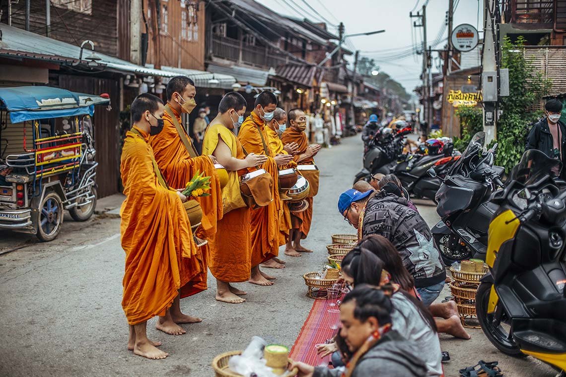 เช้าวันใหม่!!! สมาชิกชาว XMAX ตื่นกันแต่เช้ามืดเพื่อเตรียมตัวไป “ตักบาตรข้าวเหนียว” ที่ถนนคนเดินเชียงคาน โดยในช่วงเช้าวันนี้อากาศกำลังเย็นสบายและมีสายหมอกปกคลุม ทำให้เหมือนว่าเราอยู่ในเมืองในหมอกกันเลยทีเดียว ซึ่งบรรยากาศในการตักบาตรก็เต็มไปด้วยความสงบ เรียบง่าย แต่แฝงไว้ด้วยมนต์เสน่ห์ที่น่าหลงใหลเป็นอย่างมาก โดยหลังจากตักบาตรกันเสร็จสรรพสมาชิกร่วมทริป “X-Press XMAX...ที่สุดเลย” ต่างก็ไปร่วมถ่ายภาพท่ามกลางสายหมอกกันที่บริเวณริมโขง ก่อนที่จะเดินทางกลับที่พักเพื่อรับประทานอาหารเช้าและเตรียมตัวเดินทางท่องเที่ยวกันต่อตามโปรแกรมแบบสุด MAX ในวันนี้