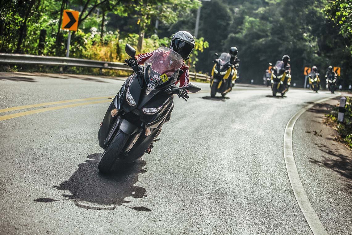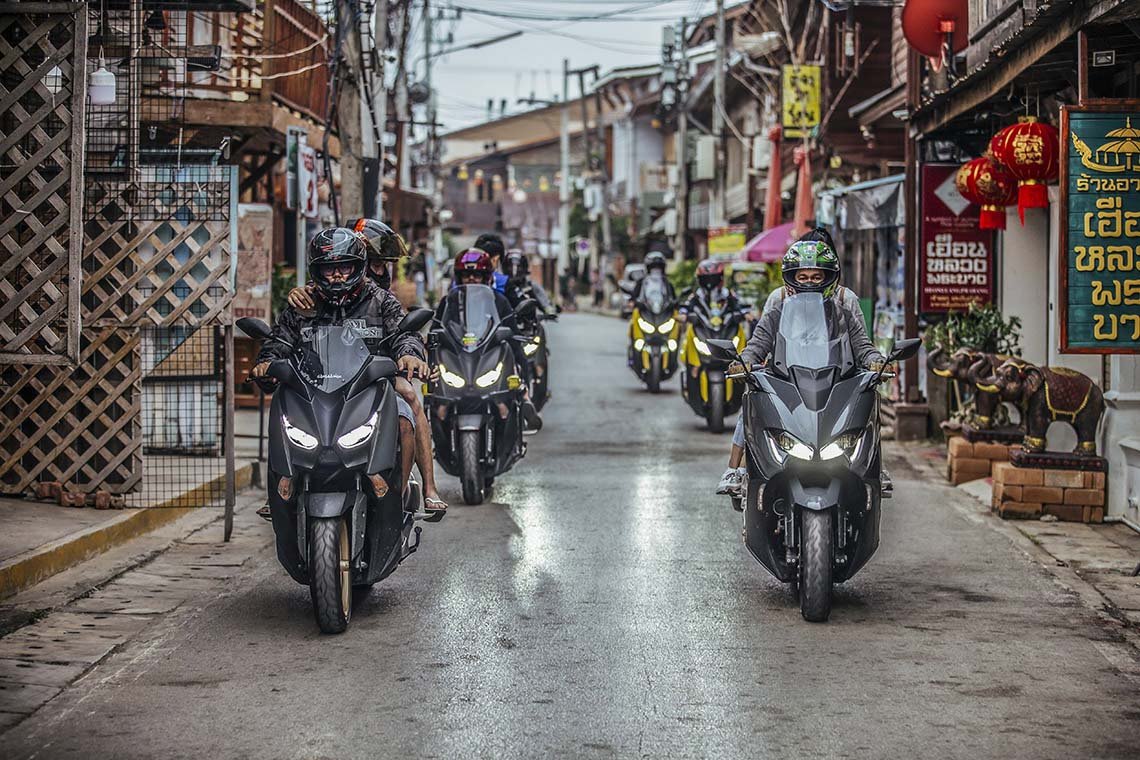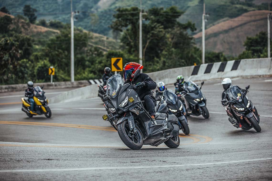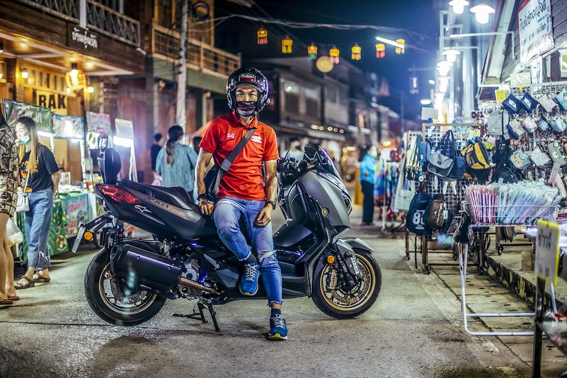 และสำหรับการเดินทางช่วงสุดท้ายในวันแรกของทริป “X-Press XMAX...ที่สุดเลย” นั่นคือ การเดินทางมุ่งหน้าเข้าสู่ ถนนคนเดิน อ.เชียงคาน จ.เลย ซึ่งอยู่ห่างจากภูเก้าง้อมไปประมาณ 140 กม. โดยขบวน XMAX ออกเดินทางจากจุดเช็คอินที่แสน MAX ในช่วงเวลาประมาณ 16.00 น. ท่ามกลางบรรยากาศที่สุดแสนจะเย็นสบาย แม้จะใช้ความเร็วในช่วงนี้ได้ไม่เต็มที่นัก เพราะเป็นเส้นทางที่ขับขี่บนทางเขาที่คดโค้งและลาดชัน แต่สมาชิกชาว XMAX กลับรู้สึกสนุกกับการลัดเลาะไปตามทางโค้งเหมือนเด็กผู้ชายได้ของเล่นยังไงยังงั้น!!!