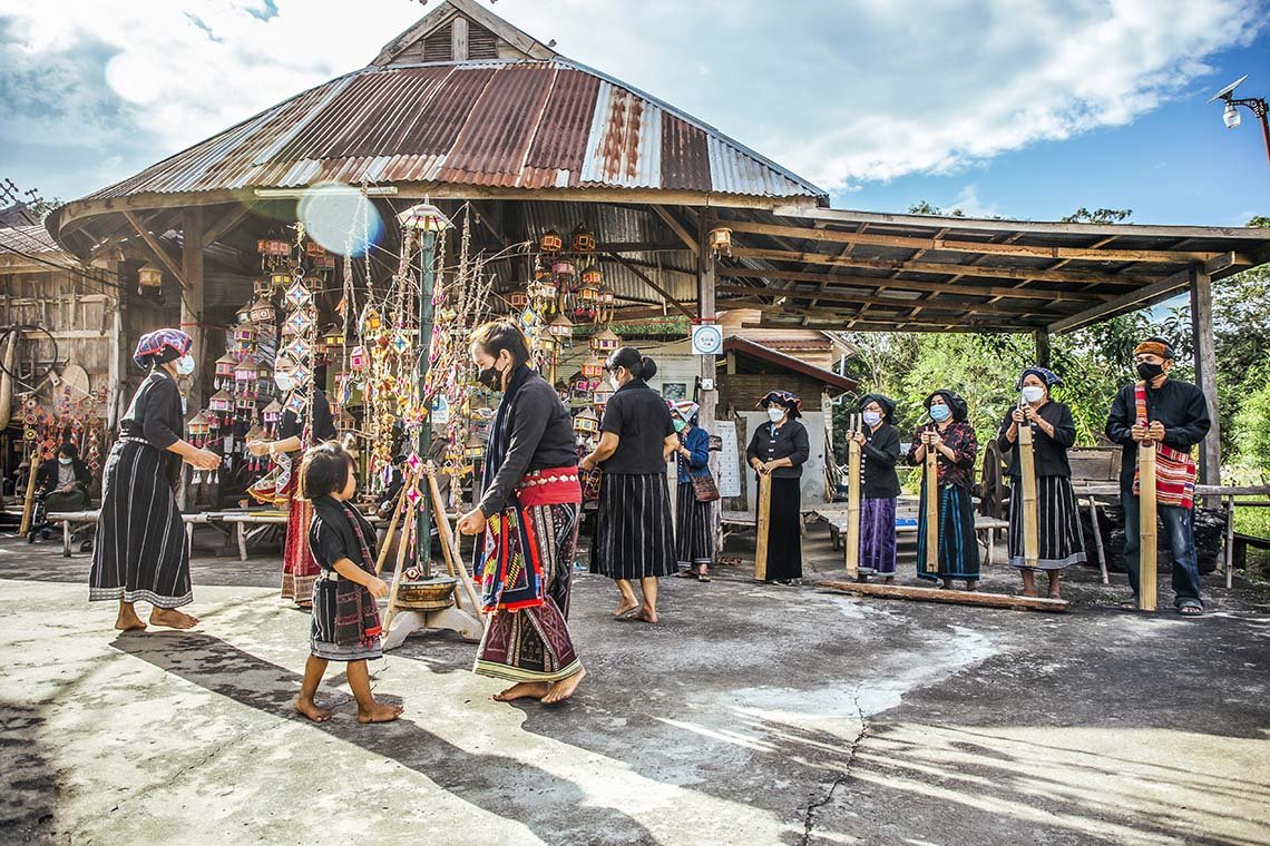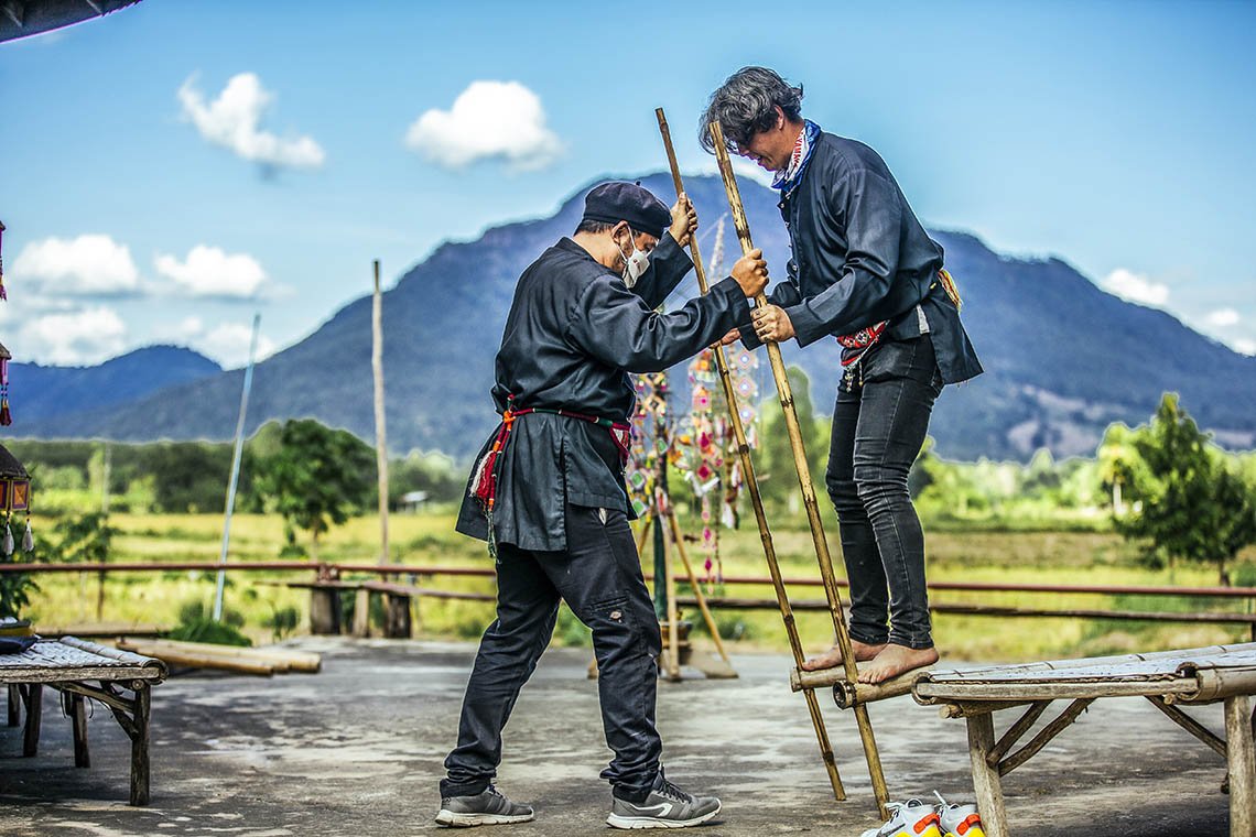 จากนั้นในเวลาประมาณบ่ายโมงกว่าๆ สมาชิกชาว XMAX จึงได้ขึ้นจากแพ และเดินทางต่อไปสัมผัสวิถีชีวิตของชาวไทดำกันที่ หมู่บ้านวัฒนธรรมไทดำ บ้านป่านาด อ.เชียงคาน ซึ่งเมื่อเดินทางมาถึงสมาชิกชาว XMAX ก็ได้รับการต้อนรับจากชาวไทดำอย่างอบอุ่น พร้อมทั้งได้ร่วมพิธี “เชิญขวัญ” โดยมี “หมอมด” ซึ่งเป็นผู้เฒ่าผู้แก่ของหมู่บ้านมาทำพิธีและผูกข้อมือให้กับสมาชิก “X-Press XMAX...ที่สุดเลย” นอกจากนี้ชาวไทดำยังได้จัดการแสดง “การละเล่นแซปาง” ร่ายรำไปรอบๆ ต้นปางของหมู่บ้าน พร้อมเสียงกระบอกไม้ไผ่กระแทกพื้นเป็นจังหวะอย่างพร้อมเพรียงและการเคาะเครื่องดนตรีที่หาจากข้าวของในชีวิตประจำวัน ทั้งถาด โอ่งน้ำ เกาะไม้ไผ่ โดยมีผู้หญิงชาวไทดำร่ายรำเป็นวงกลมพร้อมกับเชิญชวนสมาชิกชาว XMAX ร่วมร่ายรำไปด้วย ทำให้บรรยากาศเต็มไปด้วยความคึกครื้นเป็นอย่างมาก