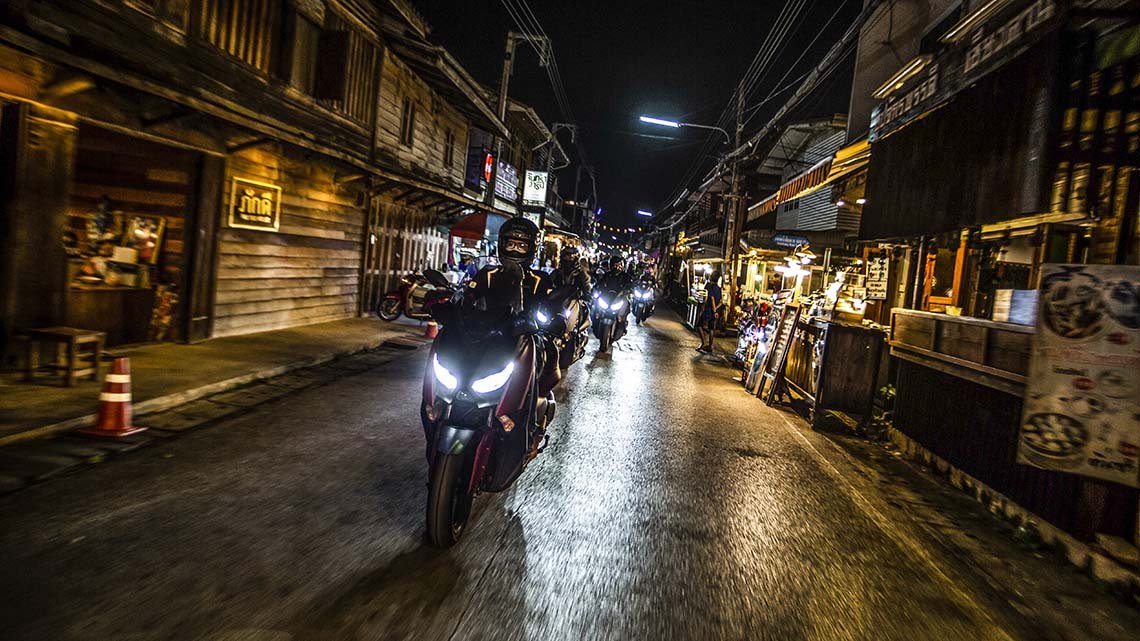 ในที่สุดขบวน “X-Press XMAX...ที่สุดเลย” ก็เดินทางมาถึง ถนนคนเดิน อ.เชียงคาน จ.เลย ซึ่งถือเป็นพื้นที่ “สุดขอบสยาม” ในเวลาประมาณ 17.30 น. โดยทันได้ชมแสงสุดท้ายที่ริมแม่น้ำโขงแบบพอดิบพอดีสร้างความประทับใจให้กับสมาชิกชาว XMAX กันเป็นอย่างยิ่ง จากนั้นจึงได้เคลื่อนขบวนผ่าน “ถนนคนเดินเชียงคาน” ไปแบบช้าๆ ชิลล์ๆ โดยทิ้งระยะห่างของแต่ละคัน เพื่อไม่ให้เป็นการรบกวนนักท่องเที่ยวและชาวบ้านร้านค้าที่อยู่สองข้างทางตลอดถนนสายนี้