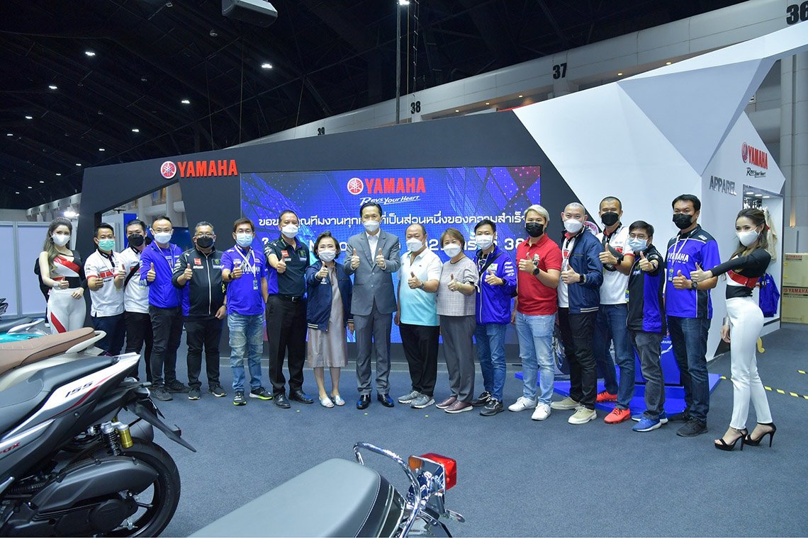 นายพงศธร เอื้อมงคลชัย รองประธานกรรมการบริหาร นางสาวจินตนา อุดมทรัพย์ ที่ปรึกษาคณะบริหาร และนายภาณุพล กิตติคำรณ รองผู้จัดการใหญ่ด้านการขายและการตลาด บริษัท ไทยยามาฮ่ามอเตอร์ จำกัด ถ่ายภาพเป็นที่ระลึกร่วมกับคณะผู้บริหารระดับสูงบริษัท ไทยยามาฮ่ามอเตอร์ จำกัด ในโอกาสฉลองปิดบูธYAMAHA SENSE OF CONNECTION อย่างเป็นทางการ ในงานมหกรรมยานยนต์ ครั้งที่ 38 ในระหว่างวันที่ 1-12 ธันวาคม 2564 โดยในการเข้าร่วมงานในครั้งนี้ ยามาฮ่าจัดรูปแบบการจองรถใหม่ผ่านระบบออนไลน์ เพื่อตอบสนองมาตรการการป้องกันการแพร่ระบาดของโรคโควิด-19 อย่างเคร่งครัดท่ามกลางลูกค้ามากมายที่ให้ความสนใจลงชื่อจองรถจักรยานยนต์ยามาฮ่ากันอย่างคึกคักรวมทั้งสิ้น 1,119 คัน โดยแบ่งเป็นรถ Big Bike จำนวน 109 คัน และรถ Standard Bike จำนวน 1,010 คัน ปิดท้ายปลายปีอย่างสุดปัง
