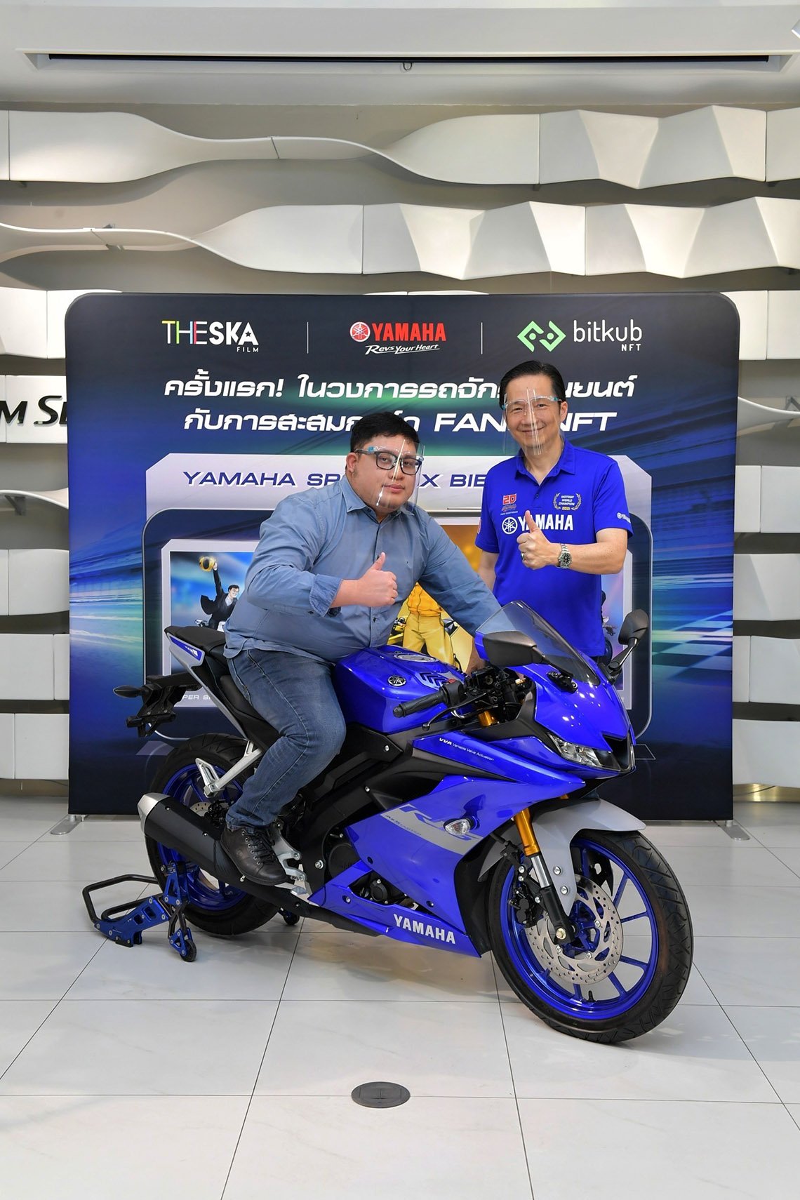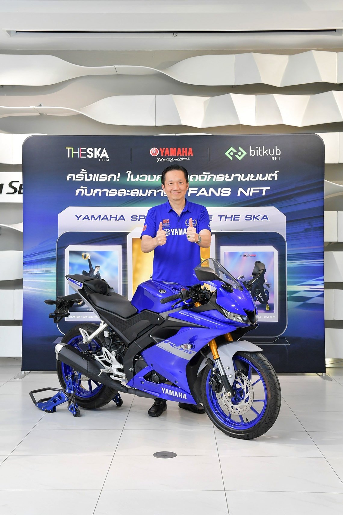 โดยการมอบรถจักรยานยนต์ ยามาฮ่า YZF-R15 ในครั้งนี้ มีขึ้นผ่านแคมเปญ YAMAHA SPORTS X BIE THE SKA FANS NFT COLLECTION ซึ่งถือว่าเป็นครั้งแรกของประเทศไทย ณ ยามาฮ่า พรีเมียม เซอร์วิส เมื่อเร็วๆ นี้