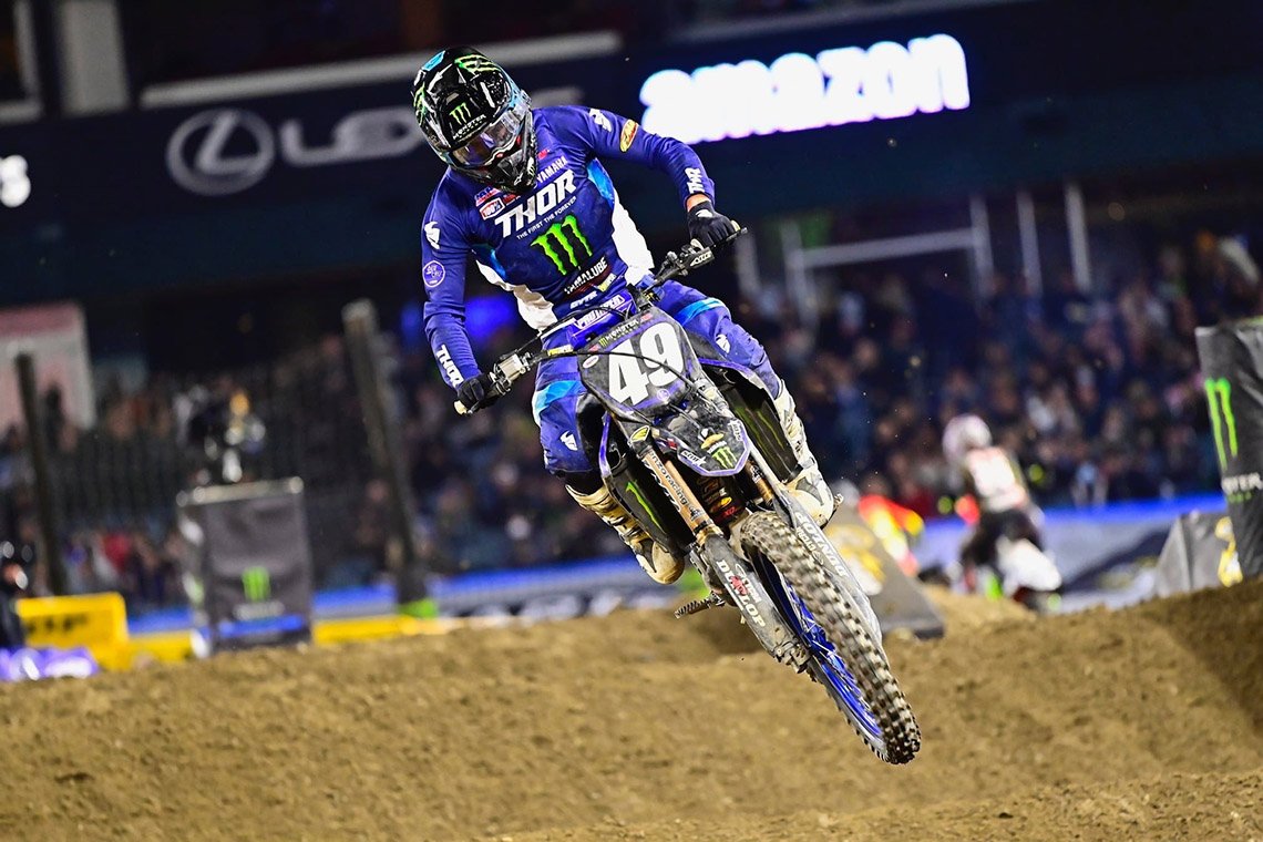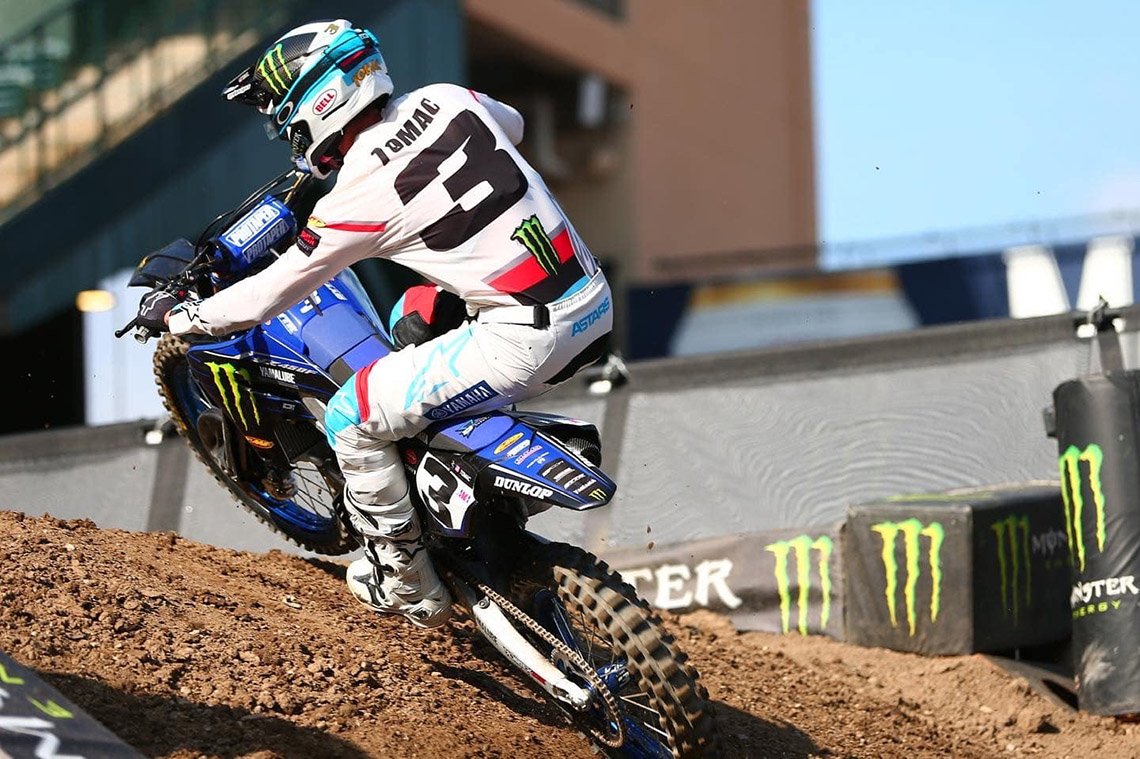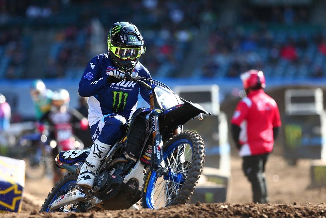ด้าน อีไล โทแม็ค #3 ประเดิมคว้าชัยภายใต้สีเสื้อค่ายยามาฮ่าในเกม รุ่น 450SX หลังบิดจบการแข่งขันด้วยอันดับ 6 ในเกมที่ อานาไฮม์ ขณะที่ ดีแลน เฟอร์รานดิส #14 ตามเพื่อนร่วมสังกัดมอนสเตอร์ เอเนอร์จี้ สตาร์ เรซซิ่ง ยามาฮ่า เข้าเส้นชัยในอันดับ 16