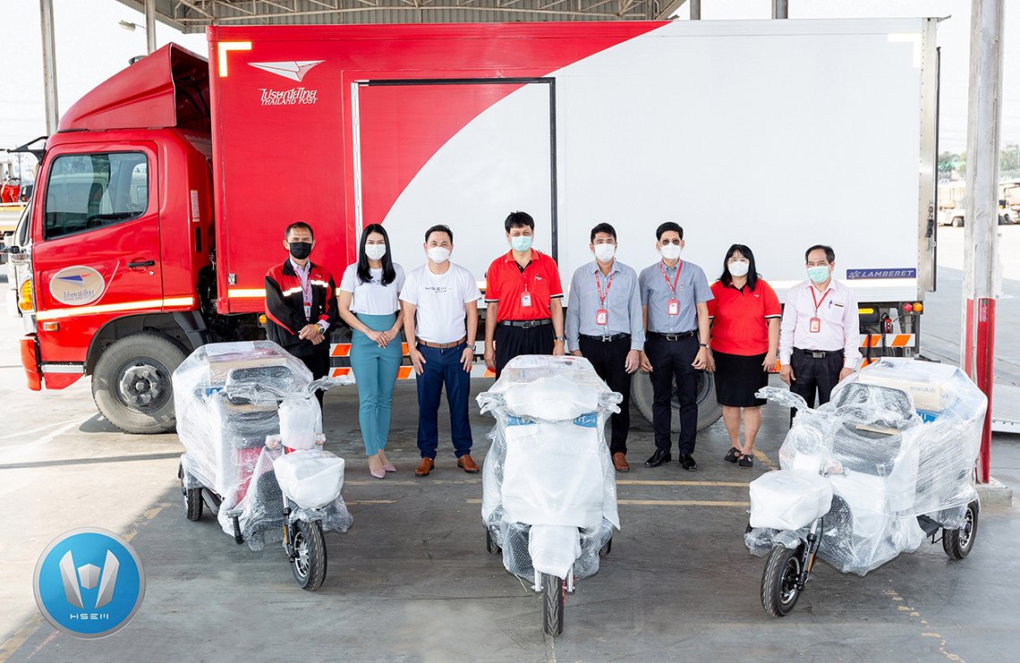 นายวันชัย ลี้นะวัฒนา ประธานเจ้าหน้าที่บริหาร บริษัท เอช เซม เทรดดิ้ง คอร์ปอเรชั่น จำกัด (ที่ 3 จากซ้าย) ถ่ายภาพกับนาย อำนาจ บุญศรี ผู้จัดการฝ่ายไปรษณีย์เขต 1 (ที่ 5 จากขวา) และทีมผู้บริหาร บริษัท ไปรษณีย์ไทย จำกัด ในวันแรกการจัดส่งสินค้าเอช เซม ผ่านไปรษณีย์ไทย ทั้งรถสามล้อไฟฟ้าและรถมอเตอร์ไซค์ไฟฟ้า เพื่ออำนวยความสะดวกให้ลูกค้าและเพิ่มศักยภาพการบริการจัดส่งทุกจังหวัดในประเทศไทย ณ สำนักงานใหญ่ เอช เซม มอเตอร์ จ.พระนครศรีอยุธยา เมื่อวันที่ 12 มกราคม 2565 ที่ผ่านมา