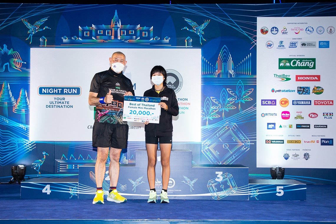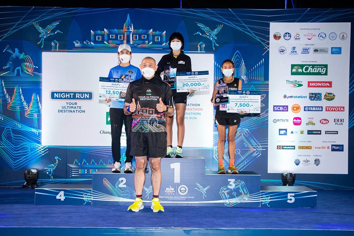 นายพลัฏฐ์ ประวีร์ชานนท์ ผู้จัดการทั่วไปฝ่ายการตลาดกลุ่มรถสปอร์ตและกลุ่มรถครอบครัว บริษัท ไทยยามาฮ่ามอเตอร์ จำกัด ร่วมแสดงความยินดีพร้อมมอบถ้วยรางวัลและเงินรางวัลมูลค่า 20,000 บาท ให้แก่ นางสาวศรัญญา บัวไพร ผู้ชนะเลิศในการแข่งขันบุรีรัมย์มาราธอน 2022 รุ่น บุคคลทั่วไปหญิง ระยะทาง 10 กิโลเมตร (มินิมาราธอน) ซึ่งวิ่งเข้าเส้นชัยมาเป็นอันดับที่ 1 ด้วยเวลา 37 นาที 28.12 วินาที อันดับที่ 2 ได้แก่ นางสาวปารียา สมเส็ม เข้าเส้นชัยด้วยเวลา 37 นาที 54.74 วินาที รับเงินรางวัลมูลค่า 12,500 บาท และอันดับที่ 3 ได้แก่ นางสาวกัลยรักษ์ เสรีวุฒิชัย ที่เข้าเส้นชัยด้วยเวลา 38 นาที 39.59 วินาที รับเงินรางวัลมูลค่า 7,500 บาท