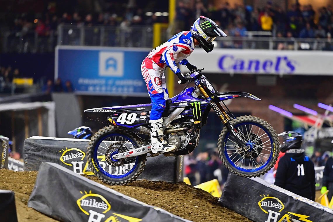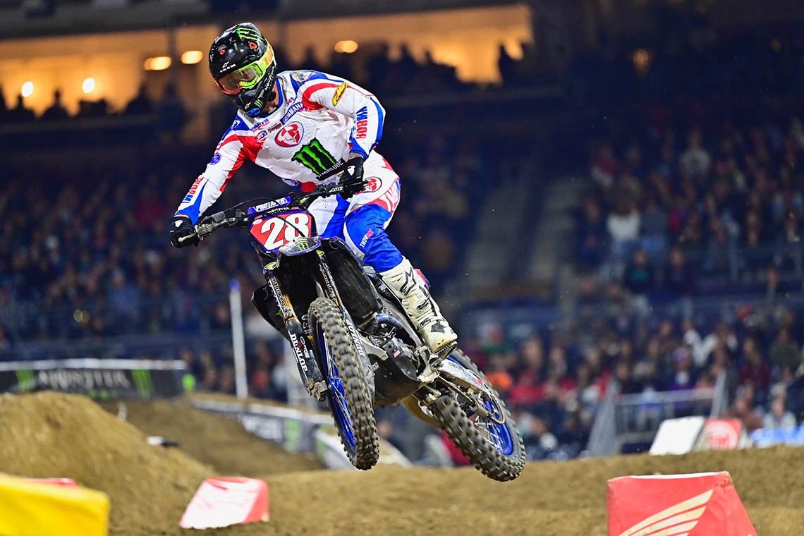 ทัพนักบิดสังกัด มอนสเตอร์ เอเนอร์จี้ สตาร์ เรซซิ่ง ยามาฮ่า สามารถทำผลงานได้อย่างโดดเด่นในเกมรุ่นใหญ่อย่าง 450SX โดย อีไล โทแมค #3 ประเดิมโพเดี้ยมแรกภายใต้สีเสื้อยามาฮ่า ควบรถแข่งยามาฮ่า YZ450F เข้าเส้นชัยในอันดับ 2 ตามด้วย ดีแลน เฟอร์รานดิส #14 ที่บิดรับธงตาหมากรุกในอันดับ 3