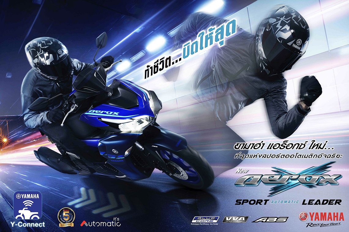 บริษัท ไทยยามาฮ่ามอเตอร์ จำกัด ตอกย้ำความเป็นผู้นำรถจักรยานยนต์ออโตเมติกของเมืองไทยครั้งใหม่! พร้อมกระตุ้นตลาดรถจักรยานยนต์ให้คึกคักยิ่งขึ้น ด้วยการส่งรถจักรยานยนต์ “New YAMAHA AEROX” ท้าชีวิต…บิดให้สุด Spice up your challenge! ดีไซน์สปอร์ตรอบคัน ดุดันตามแบบฉบับรถ Super Sport ตระกูล R-Series สมรรถนะทรงพลังด้วยความแรงจากเครื่องยนต์บลูคอร์ 155 ซีซี ผสานวาล์วแปรผันอัจฉิรยะ VVA พร้อมเทคโนโลยีใหม่ Y-Connect เชื่อมต่อข้อมูลรถเพื่อตอบสนองในการใช้งานและมั่นใจในการรับประกันมากกว่า ถึง 5 ปี หรือ 50,000 กิโลเมตร