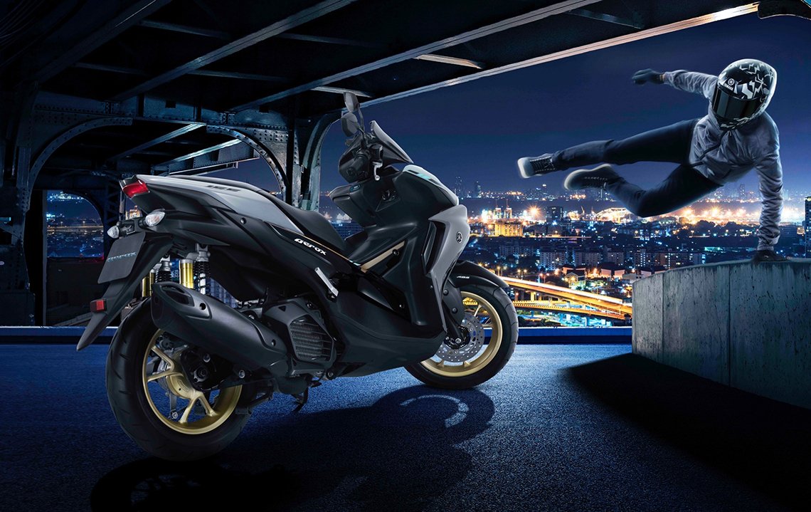 สำหรับ New YAMAHA AEROX…SPORT AUTOMATIC LEADER สปอร์ต…อัจฉริยะ ที่สุดแห่งสปอร์ตออโตเมติก ตอบสนองการขับขี่ได้อย่างเร้าใจด้วย “SPORT PERFORMAMCE” สมรรถนะแรงเหนือใคร ด้วยเครื่องยนต์บลูคอร์ 155 ซีซี พร้อมระบบวาล์วแปรผัน VVA ตอบสนองดีเยี่ยมทุกอัตราเร่ง สไตล์รถสปอร์ต ระบายความร้อนด้วยน้ำเต็มระบบ พร้อมลูกสูบแบบ Forged แข็งแกร่ง ทนทานและให้ความมั่นใจในการหยุดรถด้วยระบบเบรก ABS ป้องกันล้อล็อกขณะเบรกกะทันหัน ช่วยไม่ให้เสียการควบคุม ปลอดภัยอีกขั้นแบบรถสปอร์ตชั้นนำ เสริมด้วยยางหลังใหญ่ 140 มม. ล้อแม็ก 14 นิ้ว ใหญ่สุดในคลาสสปอร์ตออโตเมติก เฉียบคมทุกการเข้าโค้ง มั่นใจทุกการคอนโทรลแบบรถสปอร์ต และระบบกันสะเทือนหลังแบบซับแทงค์ ดูดซับแรงกระแทกดีเยี่ยม ลดแรงสะท้านในการขับขี่ ให้อารมณ์รถสปอร์ตตัวจริง