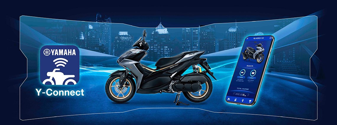 New YAMAHA AEROX มาพร้อมกับความล้ำสมัย SMART TECHNOLOGY ไฮเทคเหนือชั้น ด้วยระบบ Y-Connect Application เชื่อมต่อชีวิตสมาร์ทสุดล้ำ แอปพลิเคชันที่เชื่อมต่อข้อมูลรถผ่าน CCU ช่วยให้สามารถรับรู้ข้อมูลต่างๆ ของรถ และการขับขี่ได้บนมือถืออย่างง่ายดาย ด้วยโหมดฟังก์ชันต่างๆ ในการใช้งานอย่างครบครัน มากถึง 8 ฟังก์ชัน เพื่อความสะดวกสบาย อันได้แก่...