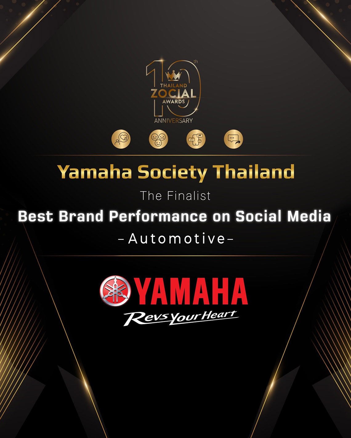 บริษัท ไทยยามาฮ่ามอเตอร์ จำกัด ผู้ผลิตและจำหน่ายรถจักรยานยนต์ยามาฮ่า ตอกย้ำความสำเร็จในการทำการตลาดดิจิตัล มาร์เก็ตติ้งในประเทศไทย โดยได้รับการเสนอชื่อเป็นหนึ่งใน 5 แบรนด์ที่ผ่านเข้ารอบ THE FINALIST BEST BRAND PERFORMANCE ON SOCIAL MEDIA (แบรนด์ที่ทำผลงานยอดเยี่ยมบนโซเชียลมีเดีย) กลุ่ม Automotive หรือธุรกิจยานยนต์ จากงาน THAILAND ZOCIAL AWARDS 2022 โดย บริษัท ไวซ์ไซท์ (ประเทศไทย) จำกัด ผู้ให้บริการด้านการวิเคราะห์ข้อมูลโซเซียลมีเดียอันดับหนึ่งของประเทศไทย ที่จัดขึ้นต่อเนื่องเป็นครั้งที่ 10 เพื่อให้ความสำคัญกับวงการโซเซียลที่เป็นส่วนหนึ่งในการขับเคลื่อนธุรกิจและเศรษฐกิจภาพรวมของไทย โดยมอบรางวัลเพื่อเชิดชูผู้ที่ใช้โซเซียลมีเดียยอดเยี่ยมในสาขาต่างๆ