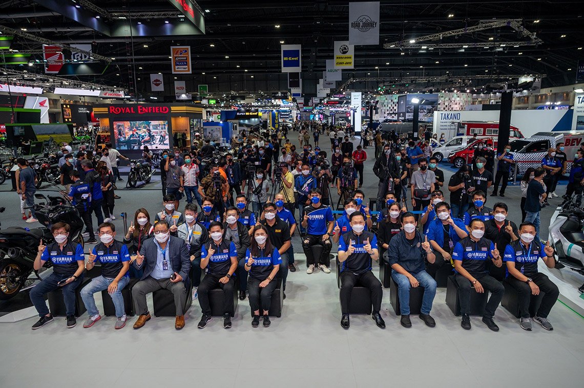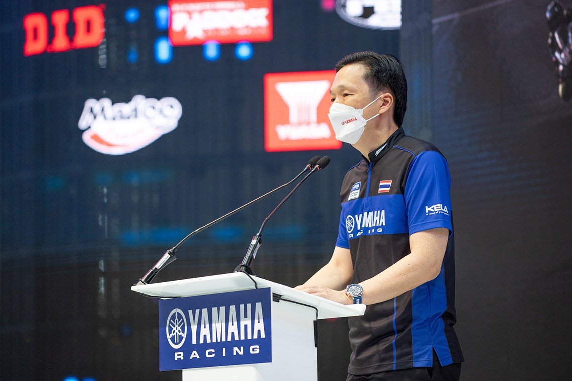 นายพงศธร เอื้อมงคลชัย รองประธานกรรมการบริหาร พร้อมด้วยผู้บริหารระดับสูง บริษัท ไทยยามาฮ่ามอเตอร์ จำกัด ถ่ายภาพร่วมกับนักแข่งสังกัด ยามาฮ่า ไทยแลนด์ เรซซิ่งทีม ผู้สนับสนุนกิจกรรม YAMAHA CHAMPIONSHIP 2022 และเจ้าของตำแหน่งแชมป์การแข่งขันประจำปี 2021 ในงานแถลงข่าวกิจกรรม YAMAHA CHAMPIONSHIP 2022