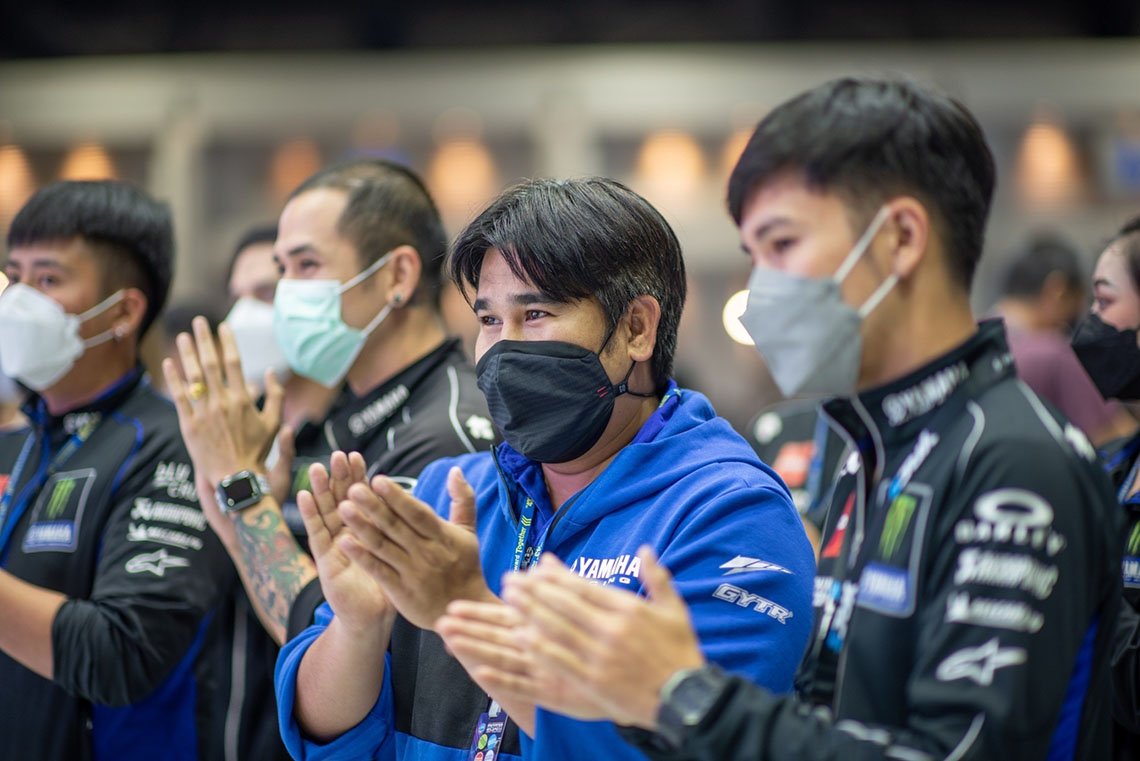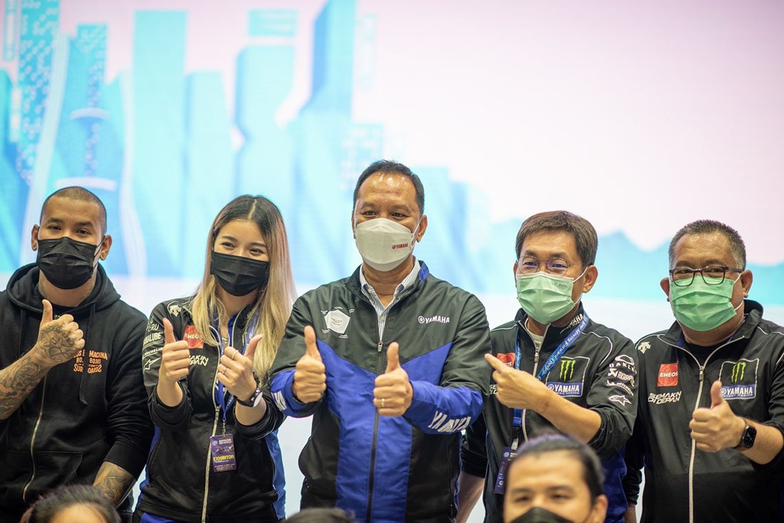 นายภาณุพล กิตติคำรณ รองผู้จัดการใหญ่ด้านวางแผนและการตลาด ถ่ายภาพร่วมกับพนักงาน ผู้จำหน่ายในเขต ก.ท.ม.และปริมณฑล ในการเฉลิมฉลองยอดจองภายในงานบางกอก อินเตอร์เนชั่นแนล มอเตอร์โชว์ ที่ บูธ YAMAHA MOTOVERSE อาณาจักรยานยนต์แห่งความเร้าใจ สู่สังคมแห่งอนาคต ด้วยยอดจองสูงถึง 1,048 คัน ประกอบด้วย ยอดจองรถจักรยานยนต์ All New R15 ผ่านระบบออนไลน์ จำนวน 100 คัน ในวันที่ 23 มีนาคม 2565 ในเวลาเพียง 8 นาที