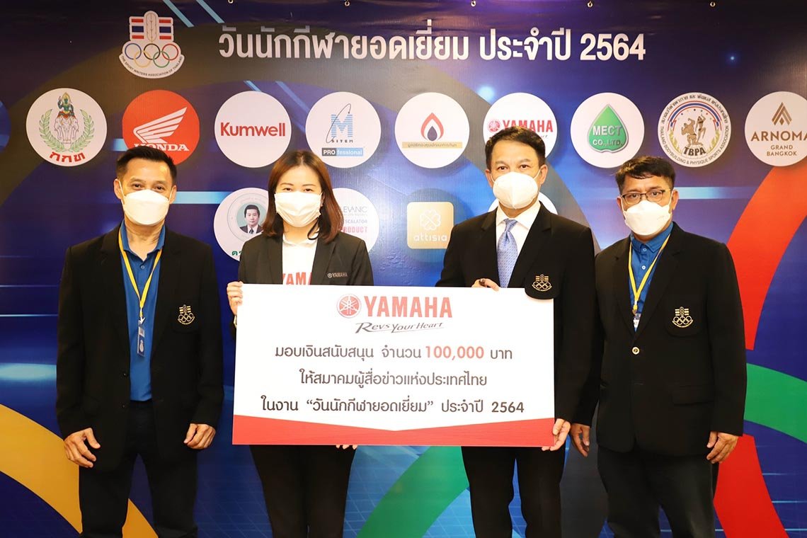 นางสาวอัญชลี ศรีพิทักษ์ ผู้จัดการส่วนบริหารตราสินค้า ประชาสัมพันธ์ และลูกค้าสัมพันธ์ บริษัท ไทยยามาฮ่ามอเตอร์ จำกัด มอบเงินจำนวน 100,000 บาท ให้กับสมาคมผู้สื่อข่าวกีฬาแห่งประเทศไทย โดยมีนายวรวุฒิ พงษ์ธีระพล นายกสมาคมผู้สื่อข่าวกีฬาแห่งประเทศไทย เป็นผู้รับมอบ เพื่อสนับสนุนในงาน “วันนักกีฬายอดเยี่ยม” ประจำปี 2564 เพื่อเชิดชูเกียรติแก่นักกีฬาอาชีพ นักกีฬาสมัครเล่น และนักกีฬาพิการที่สร้างผลงาน และสร้างชื่อเสียงให้กับประเทศไทยในปี 2564 ที่ผ่านมา โดยการมอบเงินสนับสนุนในครั้งนี้มีขึ้น ณ โรงแรมอโนมา แกรนด์ ราชประสงค์ เมื่อเร็วๆ นี้