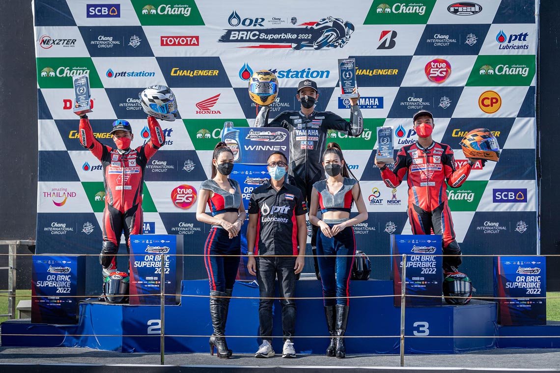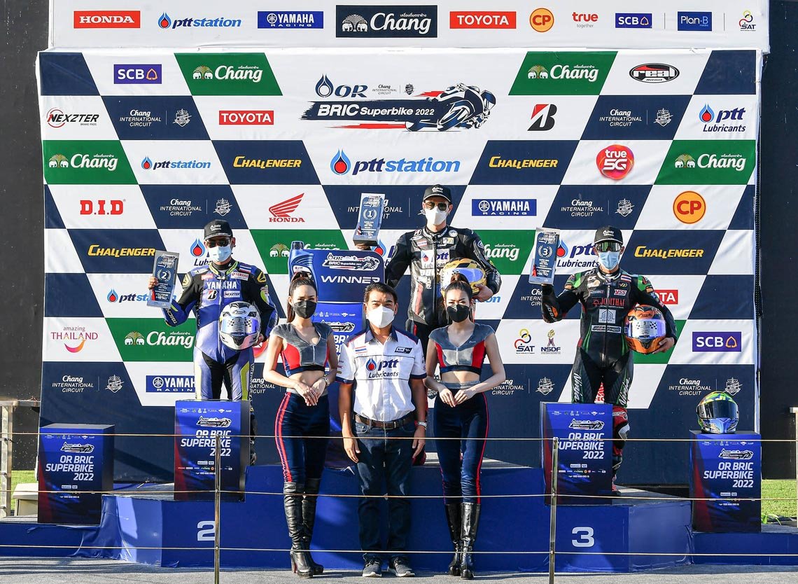 ศึกจักรยานยนต์ทางเรียบเบอร์หนึ่งของไทย “โออาร์ บีอาร์ไอซี ซูเปอร์ไบค์ แชมเปี้ยนชิพ 2022” ระเบิดความมันส์สนามแรกอย่างดุเดือด “ติ๊งโน๊ต” ฐิติพงศ์ วโรกร จาก พีเอสจีเอ ดูคาติ พีทีที ลูบริแคนต์ นก จูนเนอร์ ติ๊งโน๊ต เฉือนโค้งสุดท้ายคว้าชัยรุ่นใหญ่เหนือ “ซุป” อนุชา นาคเจริญศรี จาก ยามาฮ่า บริดจสโตน อนุชา เรซซิ่ง ทีม ขณะ “ฟอง” คณาทัต ใจมั่น จาก ยามาฮ่า ไฮสปีด พลิกเข้าวิน ซูเปอร์สปอร์ต 600 ซีซี หลังจบเรซสุดเข้มข้น ที่ สนามช้าง อินเตอร์เนชั่นแนล เซอร์กิต จ.บุรีรัมย์