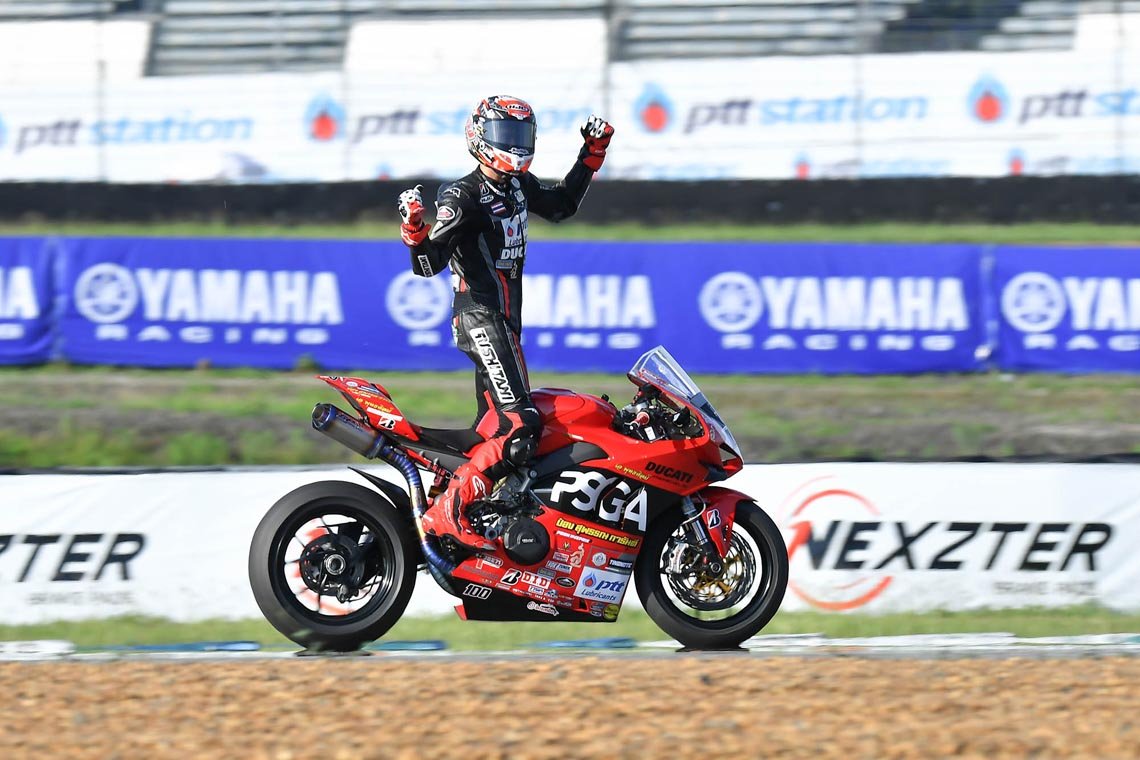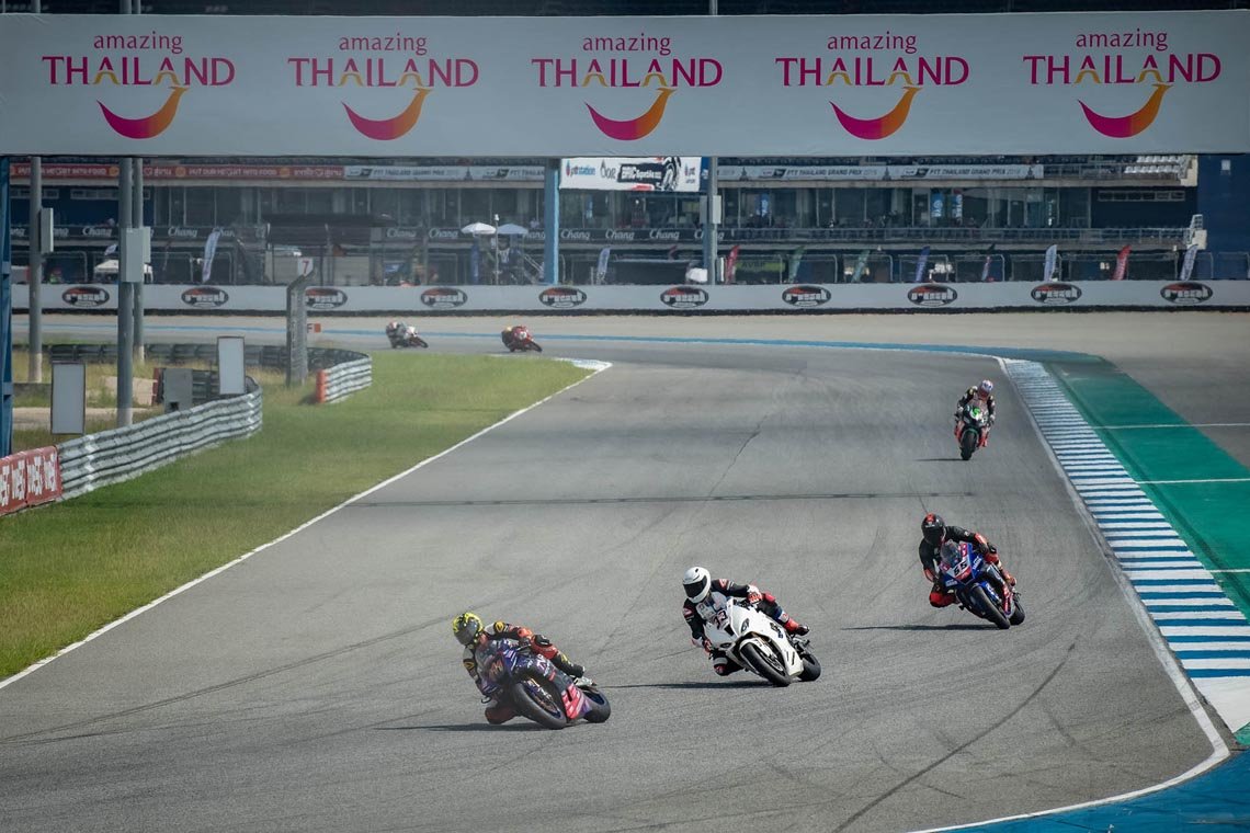 ไฮไลต์ของสุดสัปดาห์นี้อย่าง ซูเปอร์ไบค์ 1,000 ซีซี (SB1Pro, SB1, SB2) ซึ่งเป็นคลาสสูงสุดของประเทศไทยขับเคี่ยวกันอย่างสุดมันส์ตั้งแต่ช่วงต้นเรซ โดย “ซุป” อนุชา นาคเจริญศรี จาก ยามาฮ่า บริดจสโตน อนุชา เรซซิ่ง ทีม ที่ไล่บี้เจ้าของโพล “ติ๊งโน๊ต” ฐิติพงศ์ วโรกร จาก พีเอสจีเอ ดูคาติ พีทีที ลูบริแคนต์ นก จูนเนอร์ ติ๊งโน๊ต อย่างหนัก จนถึงโค้งสุดท้าย