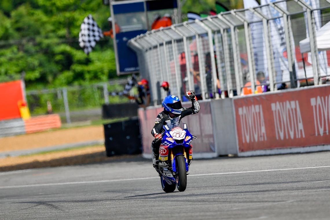 โดย คณาทัต ใจมั่น ระเบิดฟอร์มเก่ง ผงาดคว้าชัย SuperSport 600 cc SS1Pro ขณะที่ ธุรกิจ บัวผา ซิวแชมป์ SS1 รวมถึง ญาณศรณ์ ยานะพันธ์ ที่ตามขึ้นโพเดี้ยมอันดับ 2