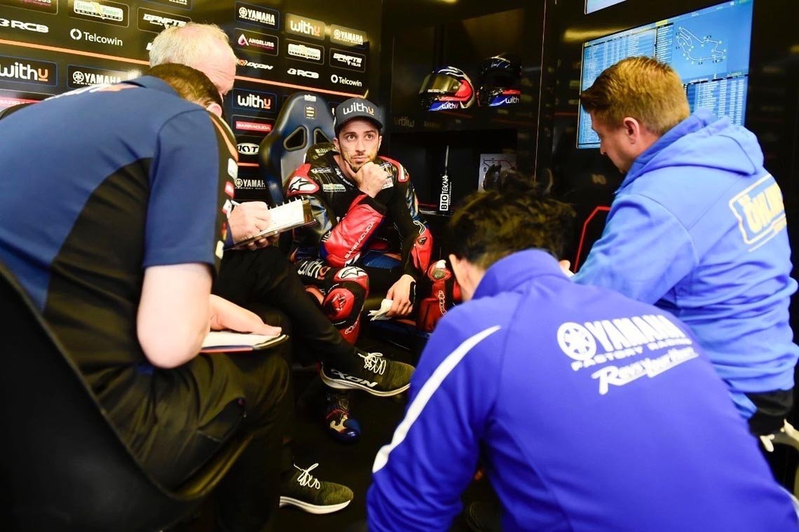 ด้าน อันเดรีย โดวิซิโอโซ่ #04 และ ดาร์ริน บินเดอร์ #40 ดูโอ้สังกัดวิธยู ยามาฮ่า อาร์เอ็นเอฟ โมโตจีพี ทีม ประจำการในกริดที่ 20 และ 23 ตามลำดับ
